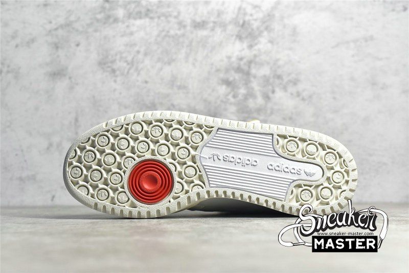 - The Forum 84 Low 'Orbit Grey' features a neutral look on its retro basketball-inspired construction. Built with leather, the shoe's upper appears in off-white, with hairy suede Three-Stripes marking the side wall. Perforations on the toe box and quarter panel provide breathability, with an adjustable strap working with traditional laces to secure the design. Underfoot, an exposed EVA wedge on the medial side of the rubber cupsole provides cushioning, giving way to a pivot-point rubber outsole for traction.
