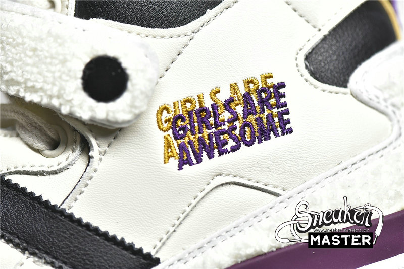 - The Girls Are Awesome x Wmns Forum High 'Cloud White Purple' released as part of a collaboration with the Copenhagen agency. The shoe's vintage basketball construction emerges with a white leather build on the upper, with chenille detailing marking the heel overlay and detachable ankle straps, which callout cities like New York, Shanghai and Paris. The quarter panel and right tongue tag include Girls Are Awesome branding to complete the look.