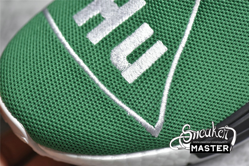 - The Pharrell x NMD Human Race 'Green' has green Primeknit uppers featuring white embroidered triangles on both feet with the words 'HU.' A black foot cage, white Boost midsoles, black bumpers, and a white outsole are also included in the design released in September 2016.