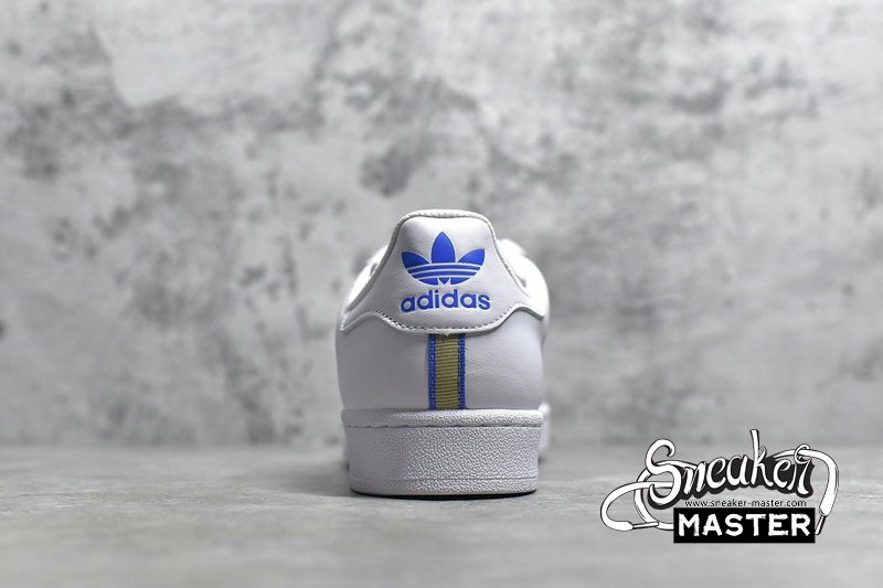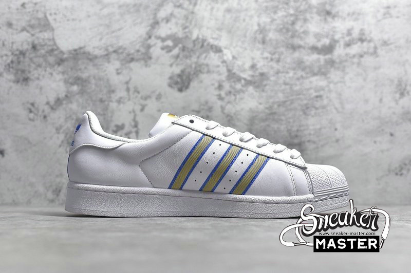 - ADIDAS SUPERSTAR SHOES CLOUD WHITE/BLUE/GOLD CG6019
