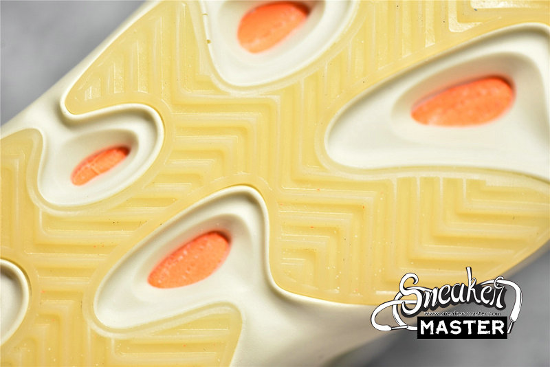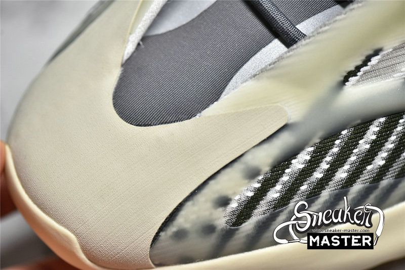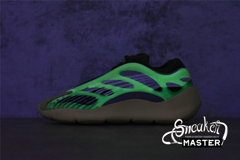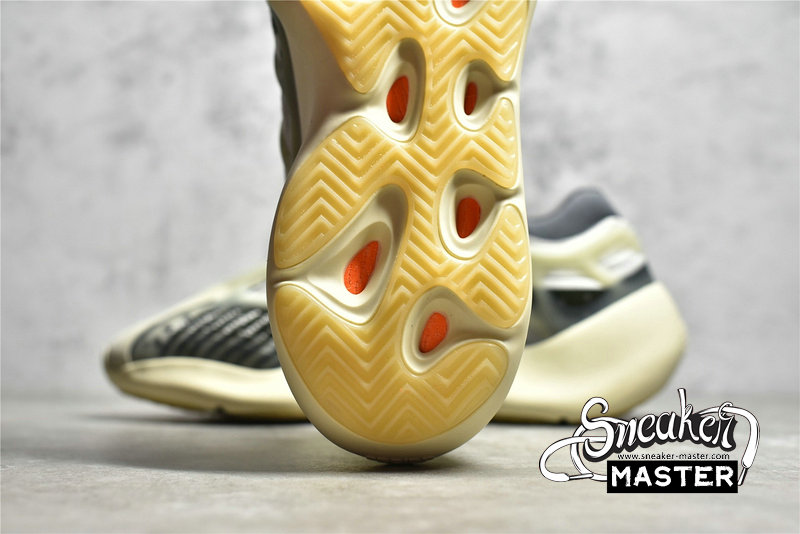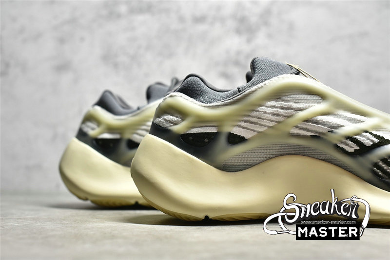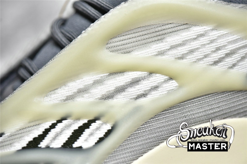 - This offering of the adidas Yeezy 700 V3 features a salt-and-pepper, White and Black Primeknit upper with its signature glow-in-the-dark cage overlay. Grey tongue and inner bootie with suede toe overlays atop a Creamy sole unit with visible Orange pods underneath completes the design.