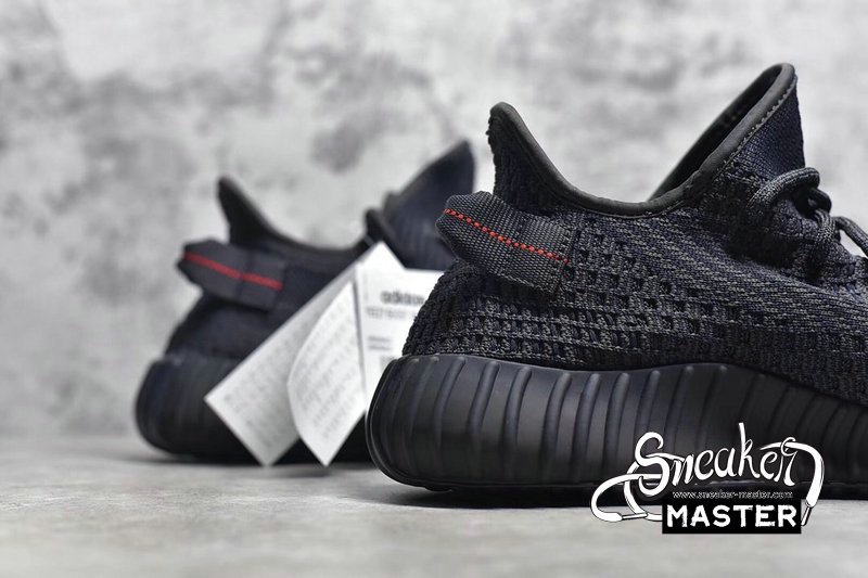 - The Yeezy Boost 350 V2 'Black Reflective' features a largely monochromatic look with a unique accent throughout. The shoe's Primeknit upper appears in black, with a tonal monofilament stripe throughout the design. Reflective elements are sewn into the construction, while the heel loop includes hits of red for the only color. Underfoot, a full-length Boost midsole provides cushioning, wrapped by a TPU shell that continues onto the outsole.
