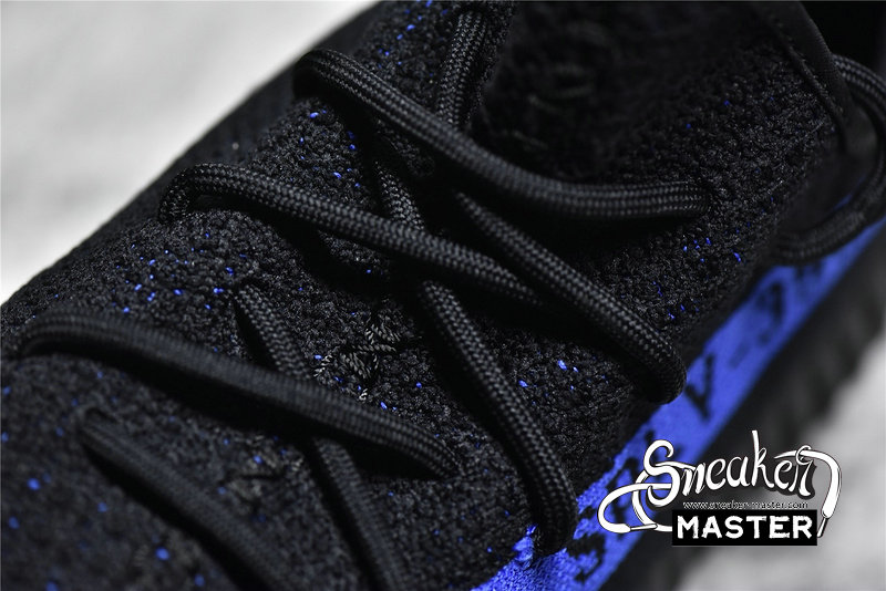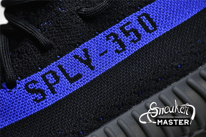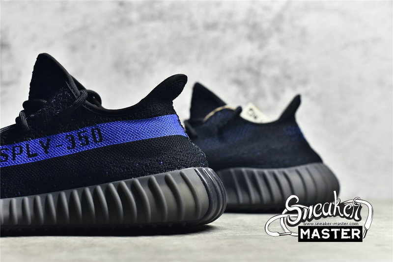 - Delivering a two-tone colorway of Kanye West's popular lifestyle runner is the adidas Yeeezy Boost 350 V2 'Dazzling Blue.' The minimalist upper is constructed with flexible Primeknit, pitched to a solid black hue with contrasting threads woven throughout. A royal blue streak cuts through the lateral side, complete with signature SPLY-350 branding. Responsive cushioning arrives via a full-length Boost midsole wrapped in a semi-translucent TPU cage.