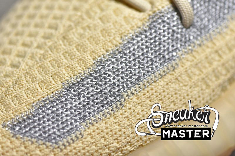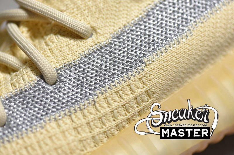 - A neutral look, the Yeezy Boost 350 V2 'Linen' is highlighted by reflective detailing on its signature post-dyed monofilament stripe. The rest of the upper appears in Linen on its Primeknit construction. Contrast is provided by the collar, while underfoot, a semitranslucent rubber cage overlays the Boost midsole. A gum rubber outsole provides traction.