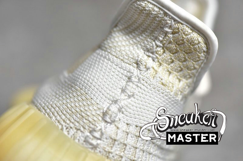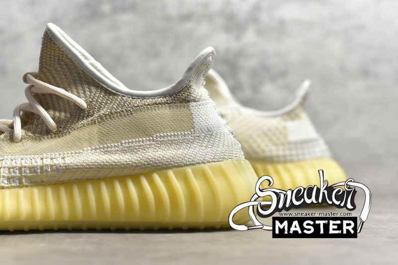 - The Yeezy Boost 350 V2 'Natural' brings a neutral look to its lifestyle construction. The shoe's upper is built with Primeknit, finished in a subdued mix of hues and complemented by a post-dyed monofilament stripe on the side wall. No-tie bungee laces support the fit, while the inside of the heel includes Three-Stripes. Underfoot, a rubber cage overlays the full-length Boost midsole, which provides cushioning.
