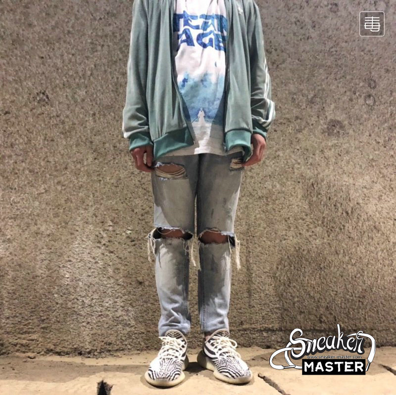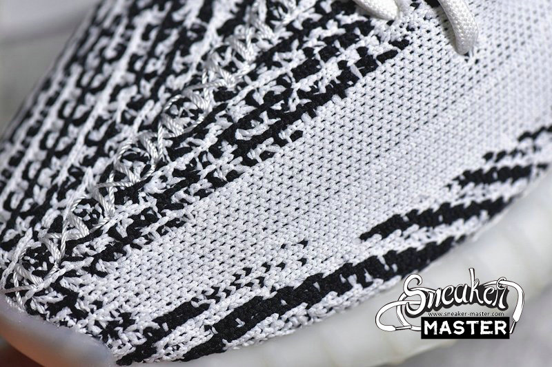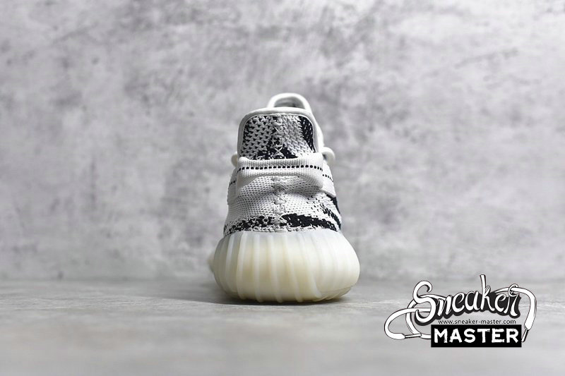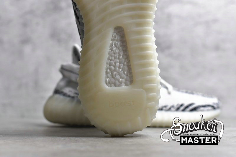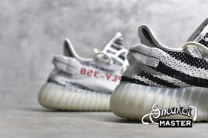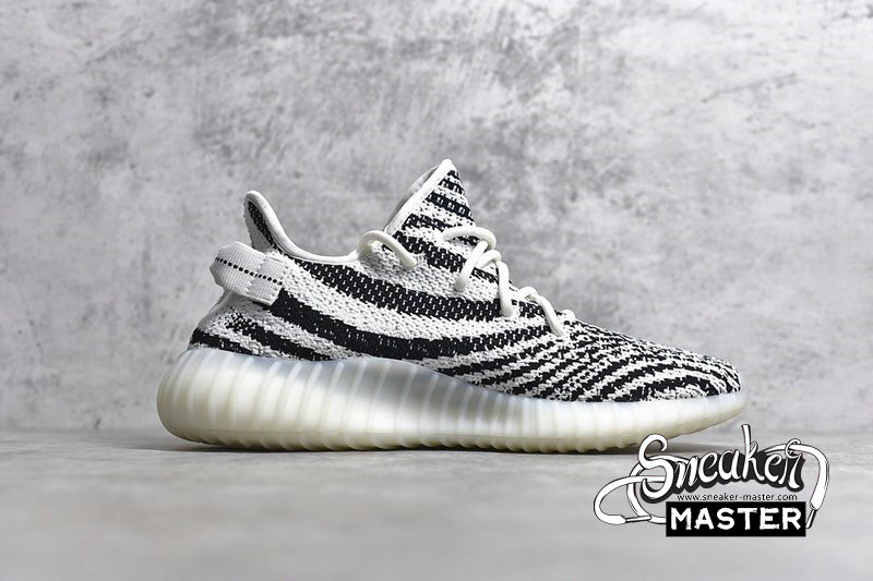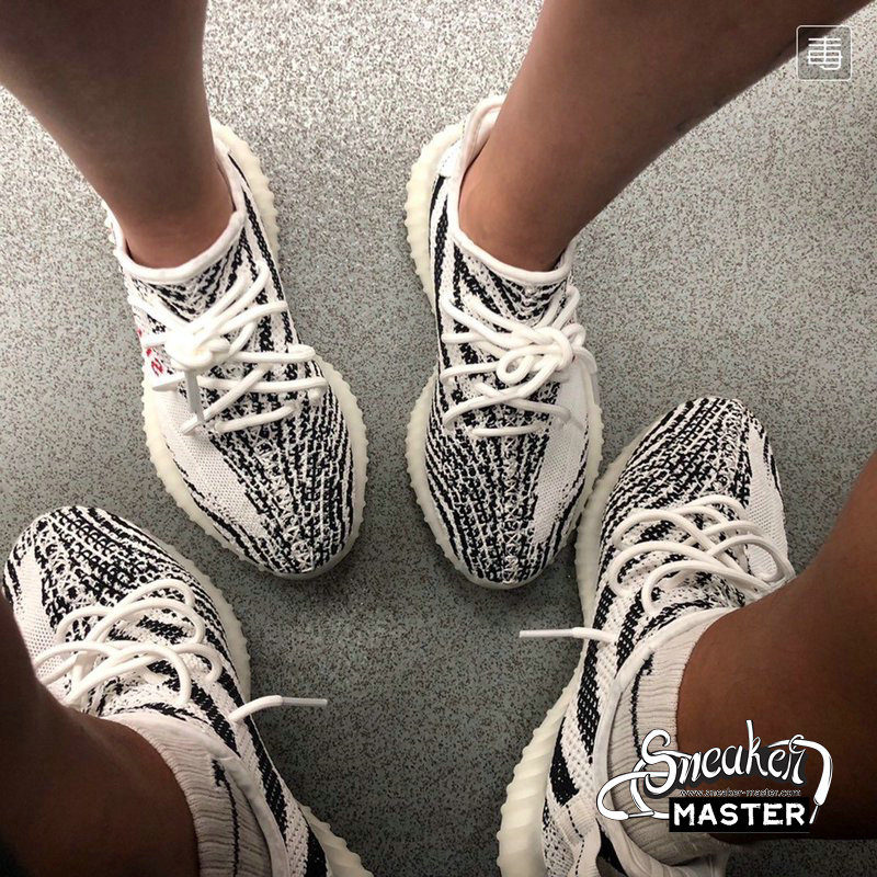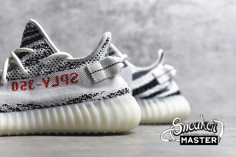 - The Yeezy Boost 350 V2 ' Zebra ' released on February 25, 2017, combining an upper white / core black Primeknit with a red SPLY 350 branding and a full-length translucent midsole boost. On November 16, 2018, another restock of the ' Zebra ' arrived, with more pairs hitting the marketplace and building on Kanye's commitment to make Yeezy more available to anyone who wished to acquire them.