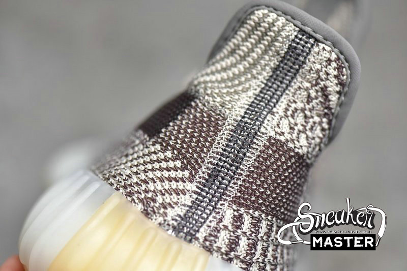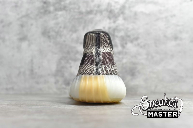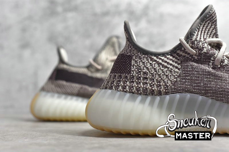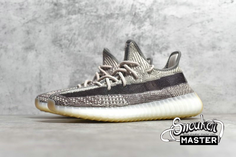 - The Yeezy Boost 350 V2 'Zyon' emerges with a stylized look on a neutral colorway. Built with Primeknit, the upper is bisected by a darker monofilament stripe, while the collar sports solid grey to add to the aesthetic. Underfoot, a semitranslucent rubber midsole overlays a full-length Boost midsole, giving way to a gum rubber outsole for traction.