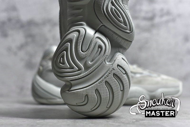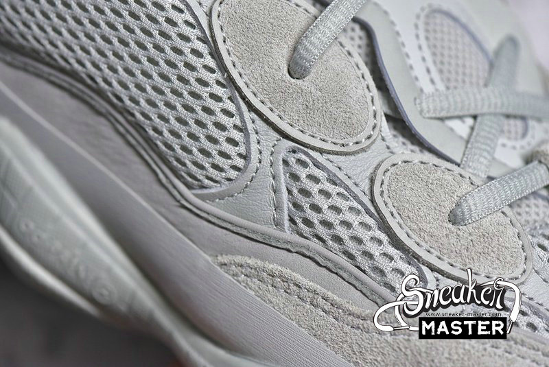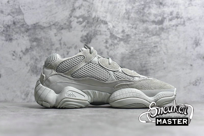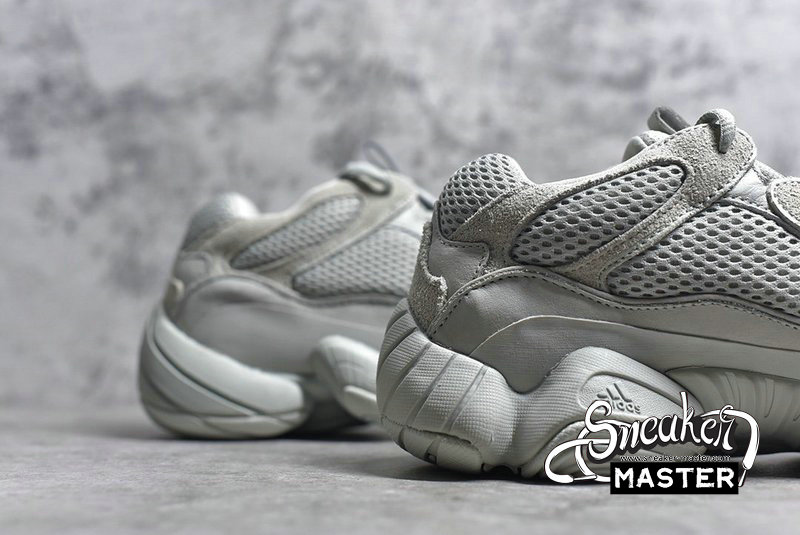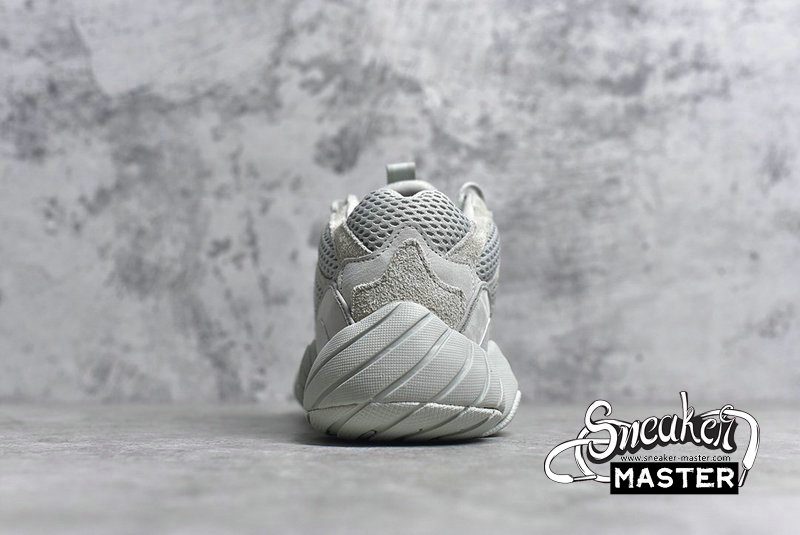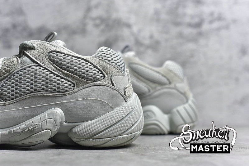 - The Yeezy 500 ‘Salt’ persists with the same monochromatic design used on the bulky lifestyle silhouette's previous colorways. Here, a light grey dresses the layered upper, built with a combination of cow suede, premium leather, mesh, and nubuck accents. A rubber wrap on top of the midsole offers enhanced stability while reflective trim around the eyelets provide visibility in low-light conditions.