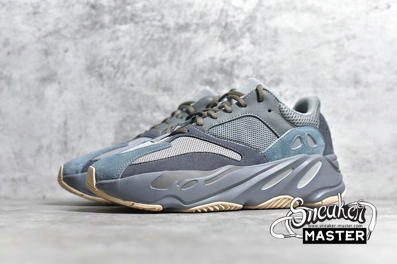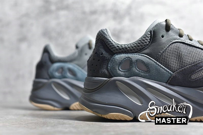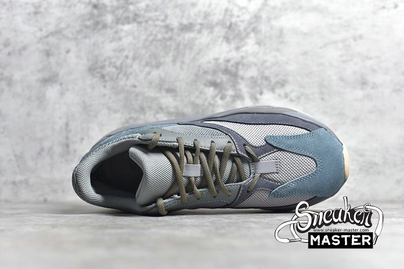 - The Yeezy Boost 700 'Teal Blue' delivers a subtle colorway of the statement-making silhouette, featuring an upper constructed from grey mesh with navy and teal suede overlays. A full-length drop-in Boost midsole delivers lightweight cushioning, while reflective detailing adds visibility in low-light conditions. A gum rubber outsole is good for durable traction underfoot.