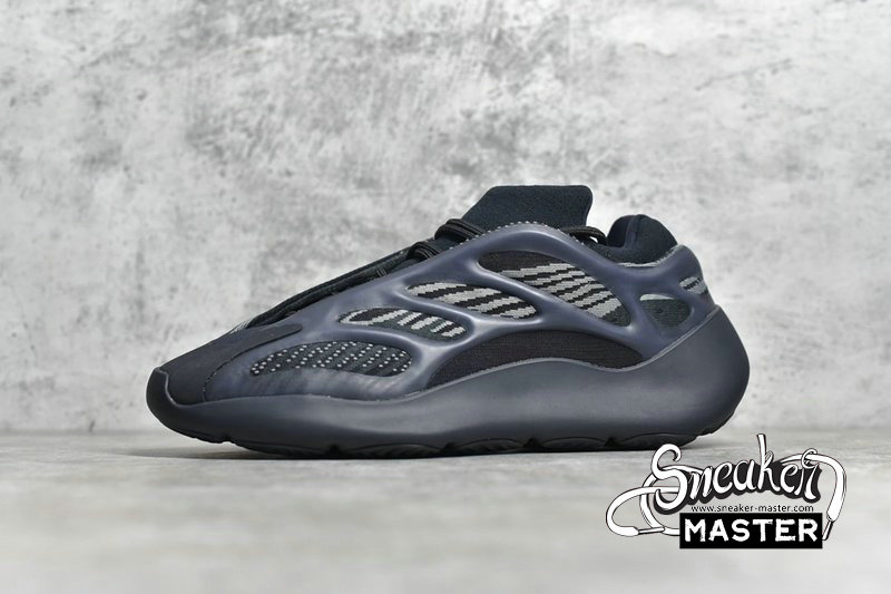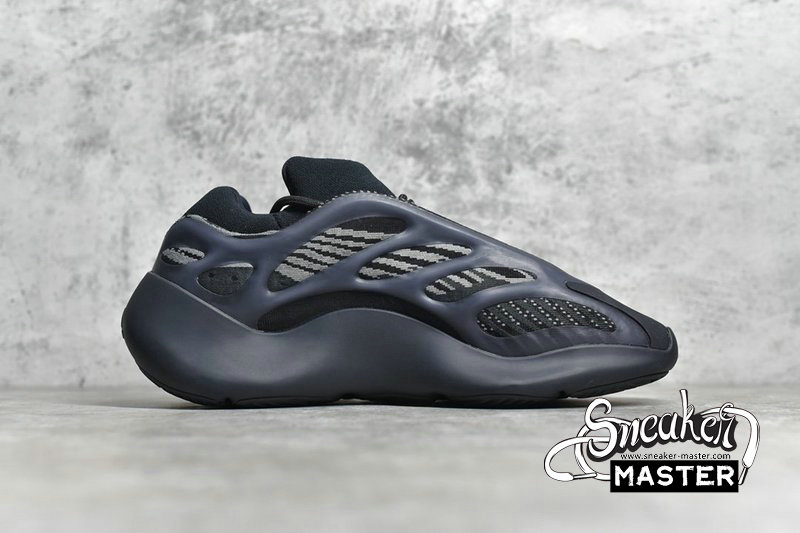 - The Yeezy 700 V3 'Alvah' brings a blacked-out look to its sculpted construction. Buit with black and grey mesh, the upper is overlaid by a glow-in-the-dark RPU exoskeleton to support the fit. The base of the tongue sports reflective detailing, while underfoot, the shoe's EVA midsole is encapsulated by PU.