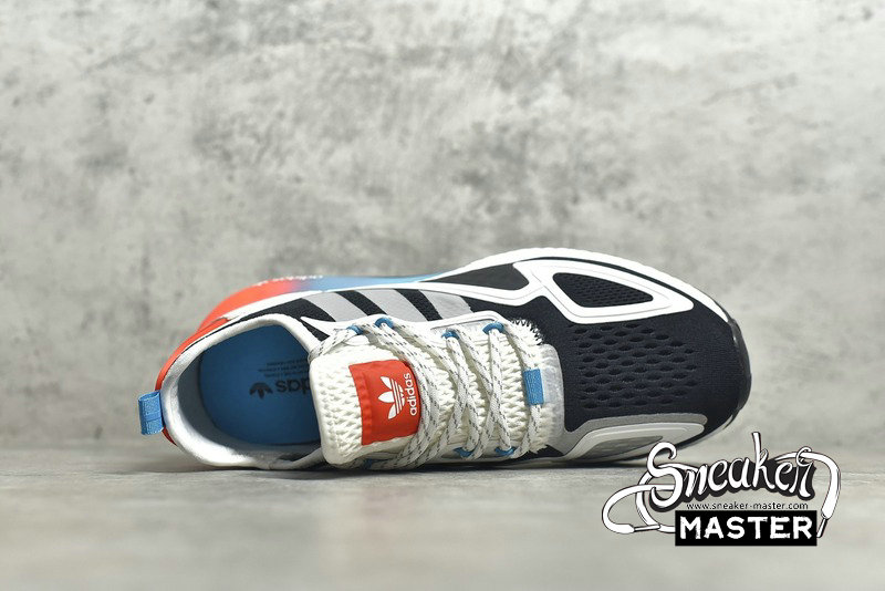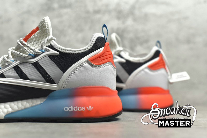 - ADIDAS ZX 2K BOOST SHOS CORE BLACK/CLOUD WHITE/ORANGE-BLUE FY2012