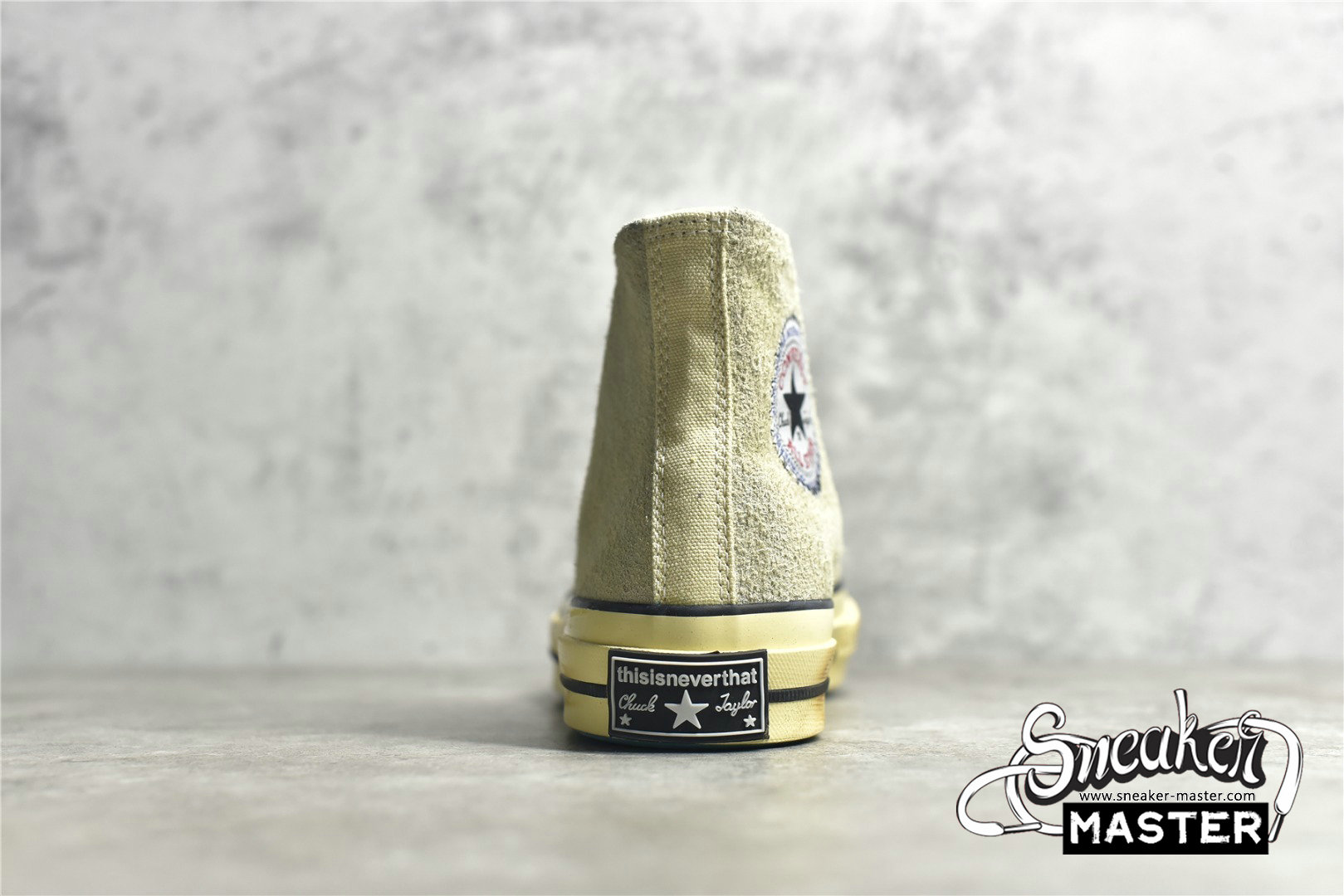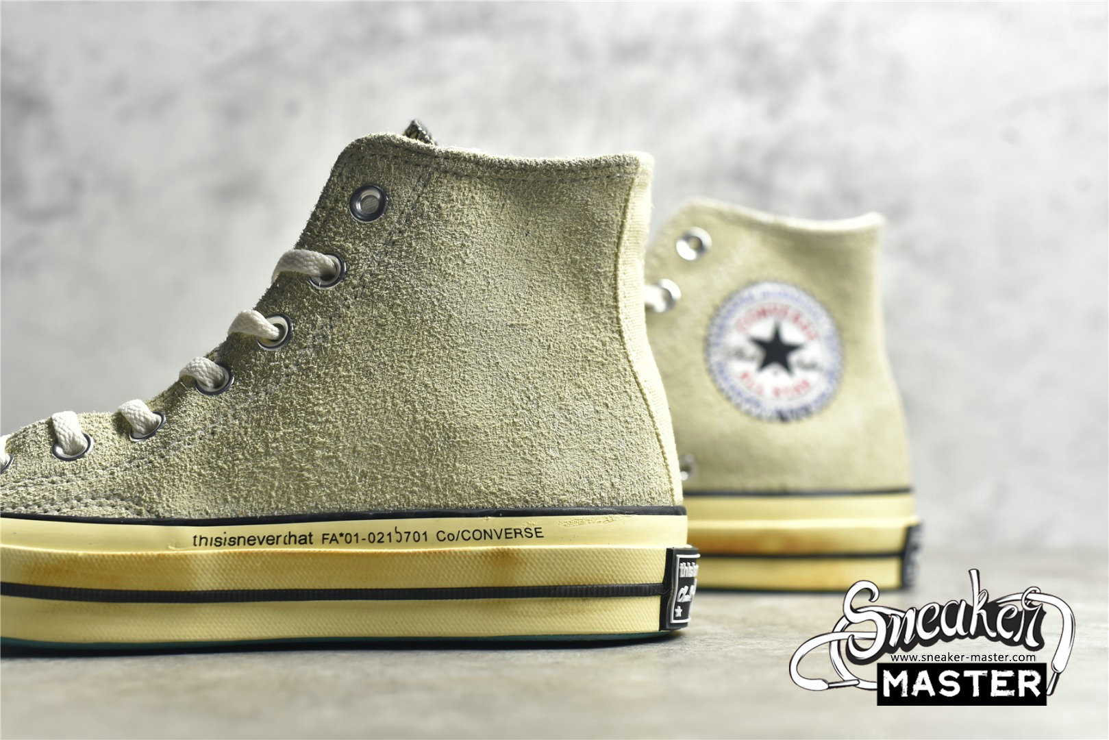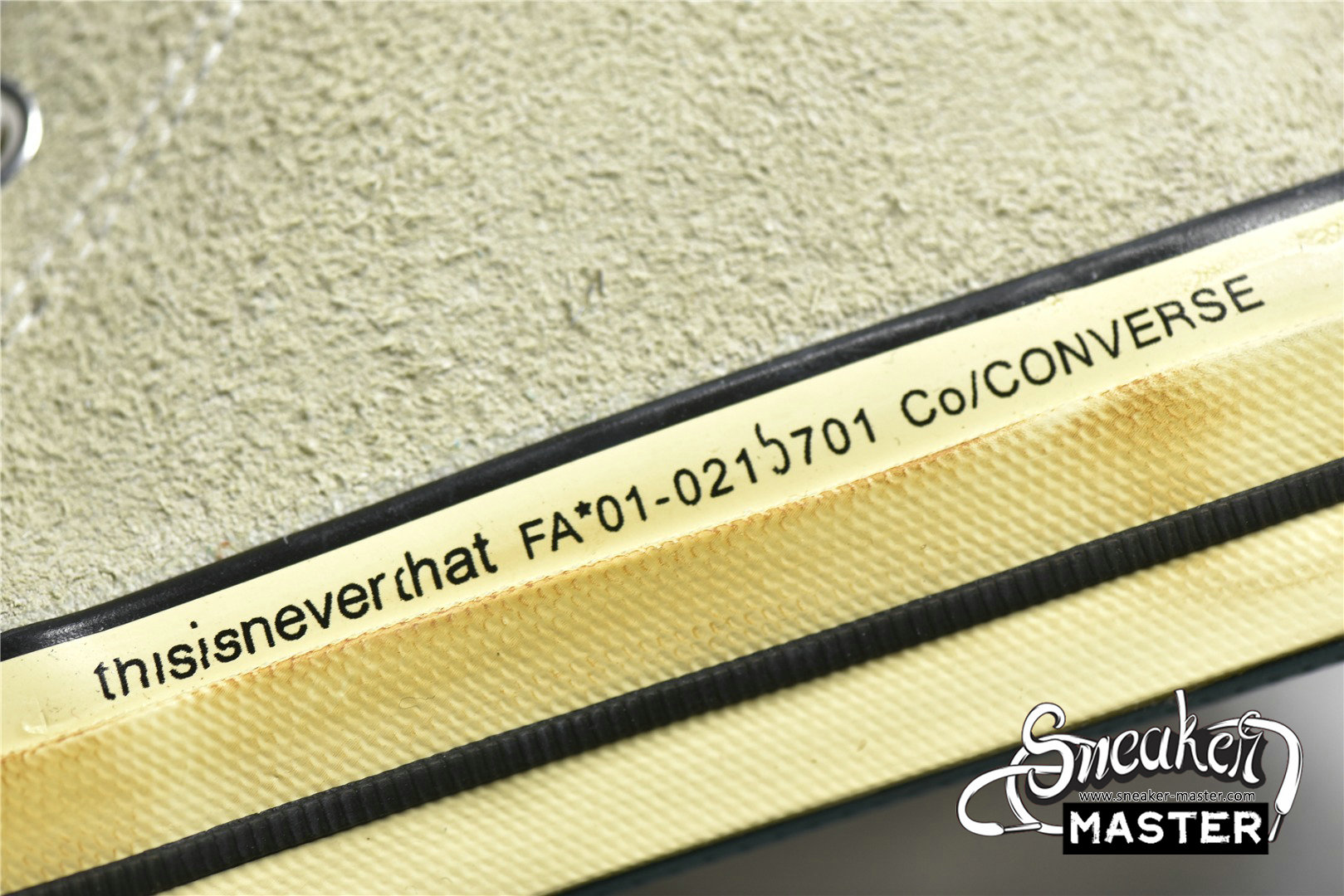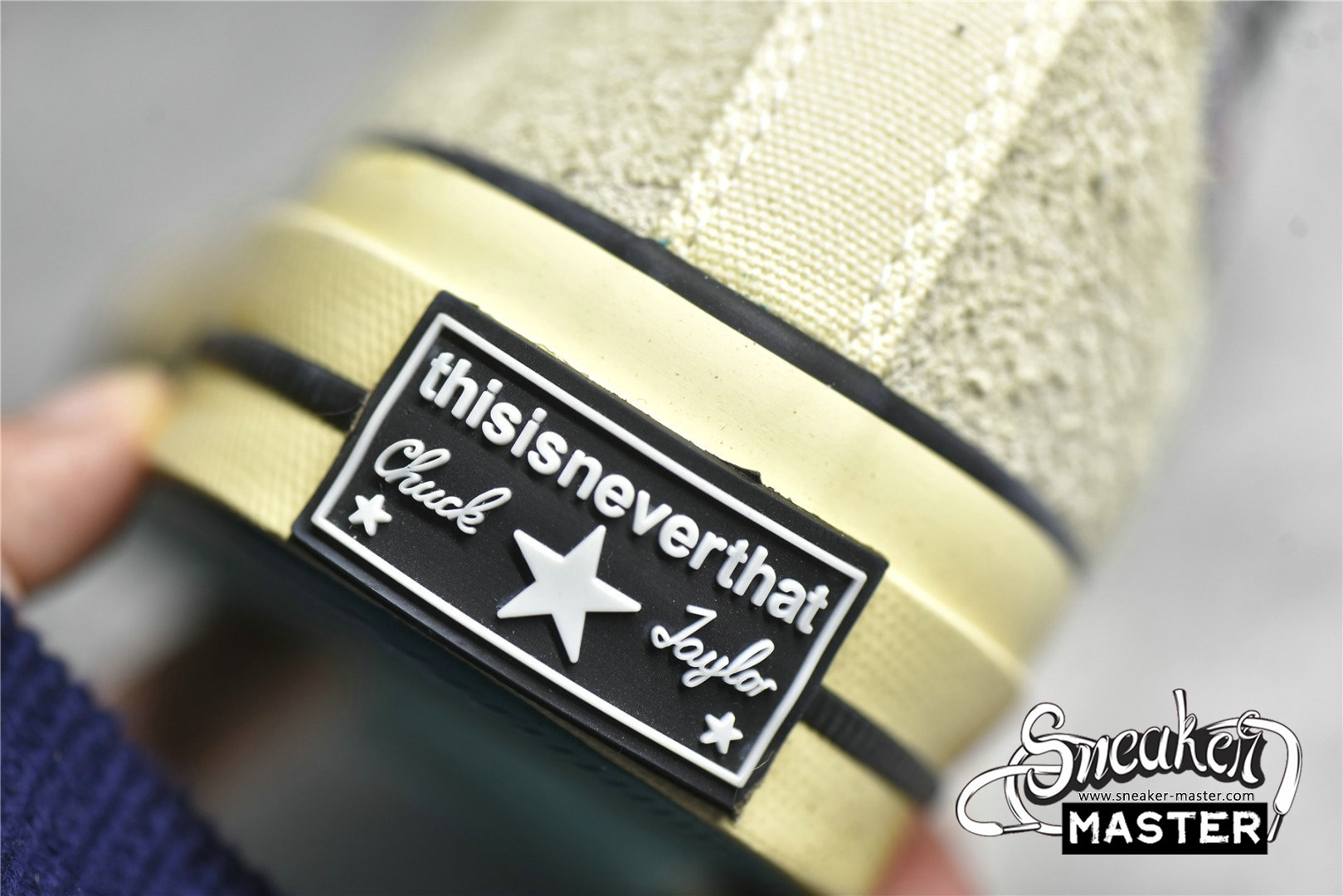 - Converse unite with the Seoul-based streetwear label Thisisneverthat to provide a ‘90s street mood on the Chuck 70. Utilizing a hairy suede upper and unique finishing effect on the midsole, thisisneverthat echoes the look of well-worn Chucks. It’s a distinct blend of old and new—with modern details that highlight the collaboration and vintage-inspired colors and textures that celebrate an iconic style era.