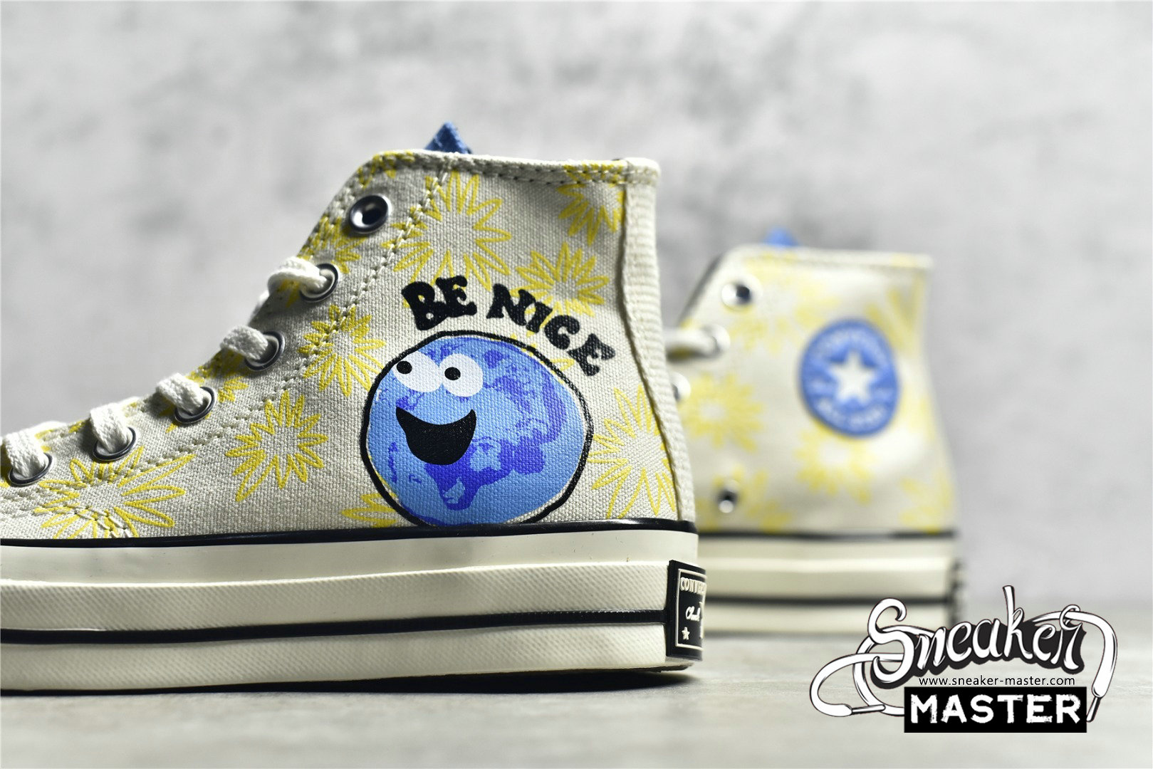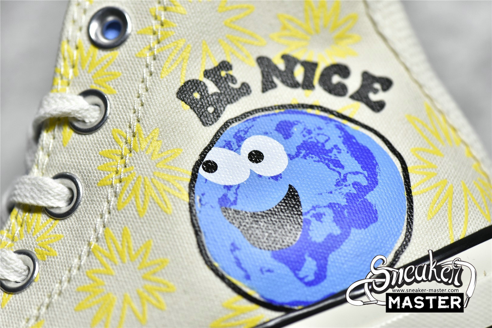 - Bright colors and unbridled joy spring from the premium Chuck 70, enveloping this organic canvas look in feel-good vibes. Sunny floral graphics bloom on the inside panel, while the colorful “Be Nice” wordmark on the outside panel doubles down on the light, bright look. Classic midsole stripes, a rubber toe bumper, and rubber toe cap grounds this style in our heritage, while modern updates like an OrthoLite insole and winged tongue stitching help keep it comfortable.