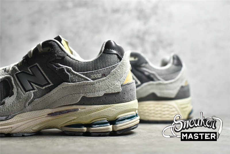 - The 2002R 'Protection Pack - Rain Cloud' released as part of the Protection Pack, a three-shoe collection. The shoe's lifestyle running construction emerges with a greyscale design, built with a mesh base and overlaid by raw-edged suede, designed to look like it's been worn away. The tongue sports exposed foam to further play to the look, while underfoot, a distressed Abzorb midsole offers cushioning, giving way to an N-ergy outsole for traction.