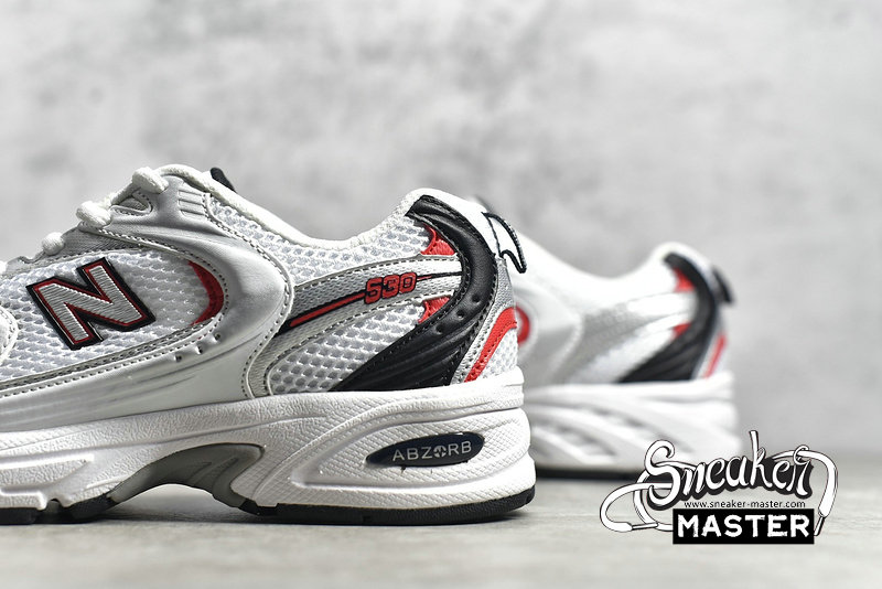 - NEW BALANCE 530 V2 RETRO RUNNING SHOES WHITE/SILVER/RED MR530SA