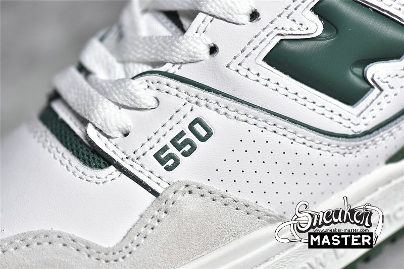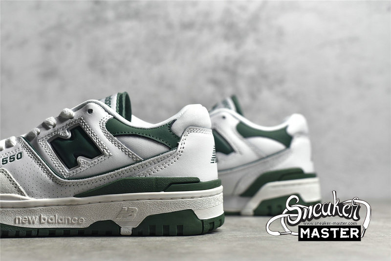 - The retro of the 550 first released in 1989 comes with a smooth leather upper in white and a light grey suede mudguard. Contrasting details add vintage vibes at their finest. The perfect vintage treatment comes with the look of the logos on the side, tongue and heel. Green details that run across the upper, paired with basketball heritage, make the New Balance BB550WT1 a successful retro.