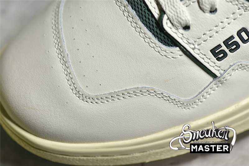 - The 550 model originally debuted in 1989 as part of New Balance’s performance footwear program. Never tied to one player, the shoe nonetheless remained largely unheralded, forgotten even, until Aime Leon Dore worked with New Balance to re-release it for Fall 2020. The retro design features a mixture of smooth and dotted white leather on the upper. Green accenting on the “550” insignia on the forefoot and “N” branding on the mid-panel add a subtle pop of color against the white background. Dual Aime Leon Dore and “NB” detailing can be found on the back of the left and right shoe, respectively. Additional design elements include green molding on the heel and green leather on the collar. The pre-yellowed midsole is a nod to the nostalgic vibe of the New Balance 550.