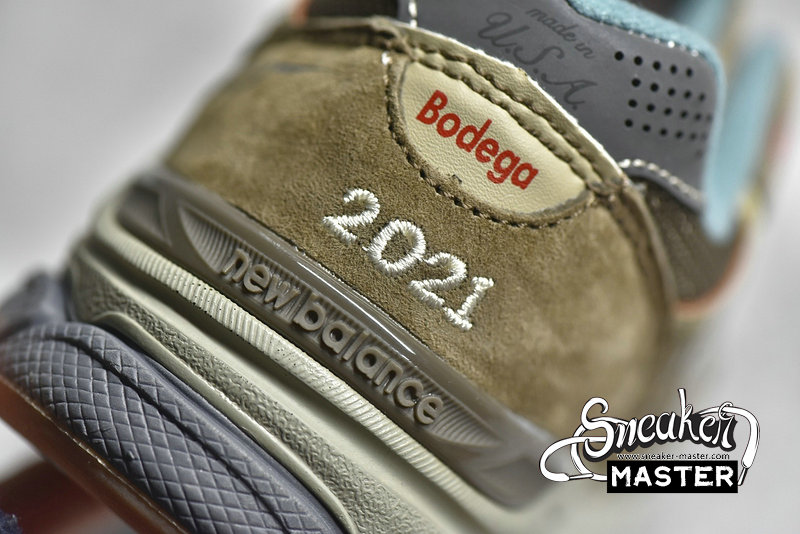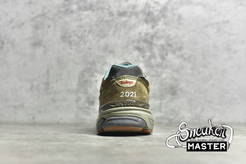 - Also known as the 'Anniversary,' the Bodega x 990v3 Made In USA 'Here to Stay' celebrates 15 years of Bodega. Built with a mesh base, the shoe's upper is overlaid by suede, finished in subdued hues and complemented by 'N' branding on the quarter panel. Molded eyelets add red to the look, with teal provided by the textile collar lining. The heel includes Bodega branding, with '2006' embroidered on the left shoe and '2021' on the right. Underfoot, an Encap midsole and gum rubber outsole support the fit.