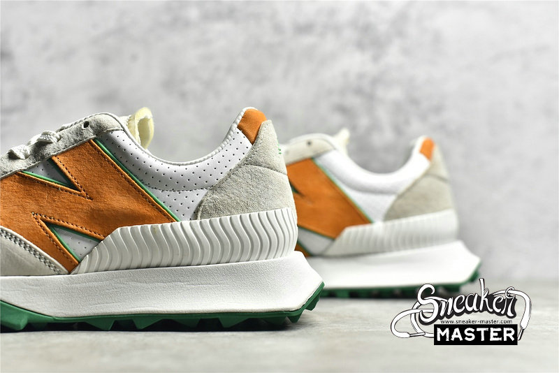 - New Balance teamed up with the Parisian fashion brand to create the Casablanca x XC-72 'Orange Green,' which features motorsports inspiration. Billed as a 'sports car for your feet,' the shoe emerges with a familiar mix of hues previously featured on a 2020 collaboration from the two brands, appearing on a perforatedd white leather upper overlaid by off-white suede. Suede marks the 'N' branding, which appears in orange and green, while a textured heel counter is included for stability. Underfoot, a green rubber outsole offers traction, climbing up the white foam midsole and sporting two different patterns for grip.