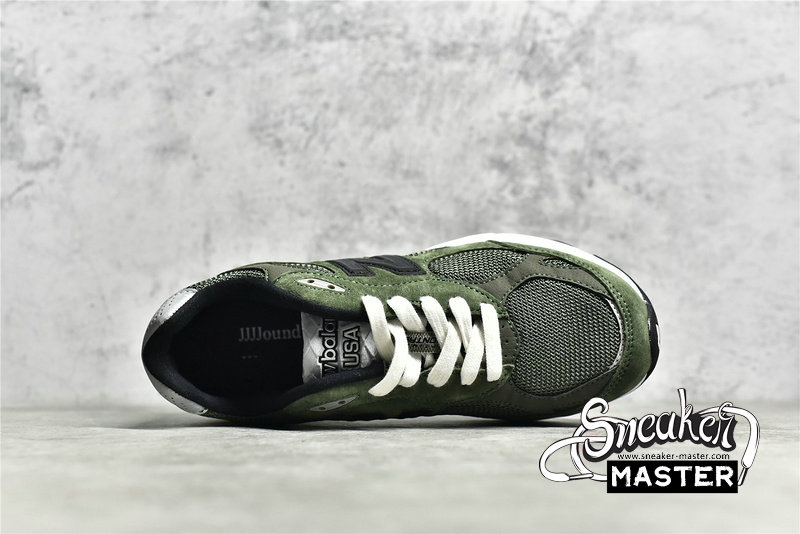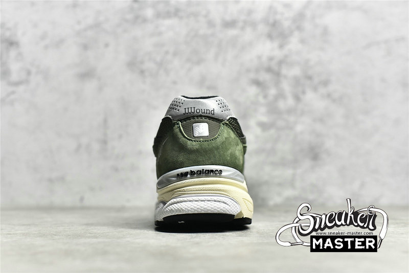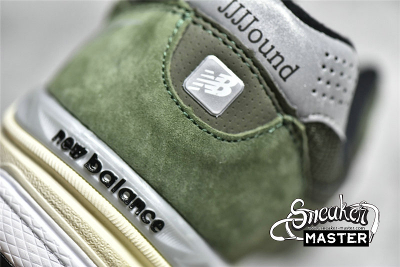- In collaboration with designer Justin Saunders in the third iteration of the vaunted 990 series is the JJJJound x New Balance 990v3 Made In USA 'Olive.' The upper is made from breathable mesh with soft pigskin suede overlays and is permeated with rich olive green hues. A black 'N' logo is featured on the quarter panel, while 'JJJJound' is inscribed on the reflective silver heel tab. It's built on New Balance's ENCAP midsole with a plush EVA core and a polyurethane rim.