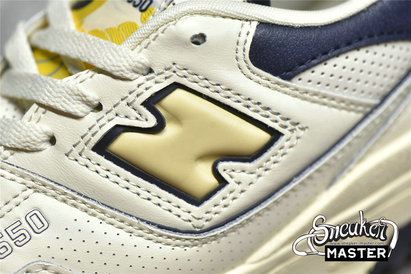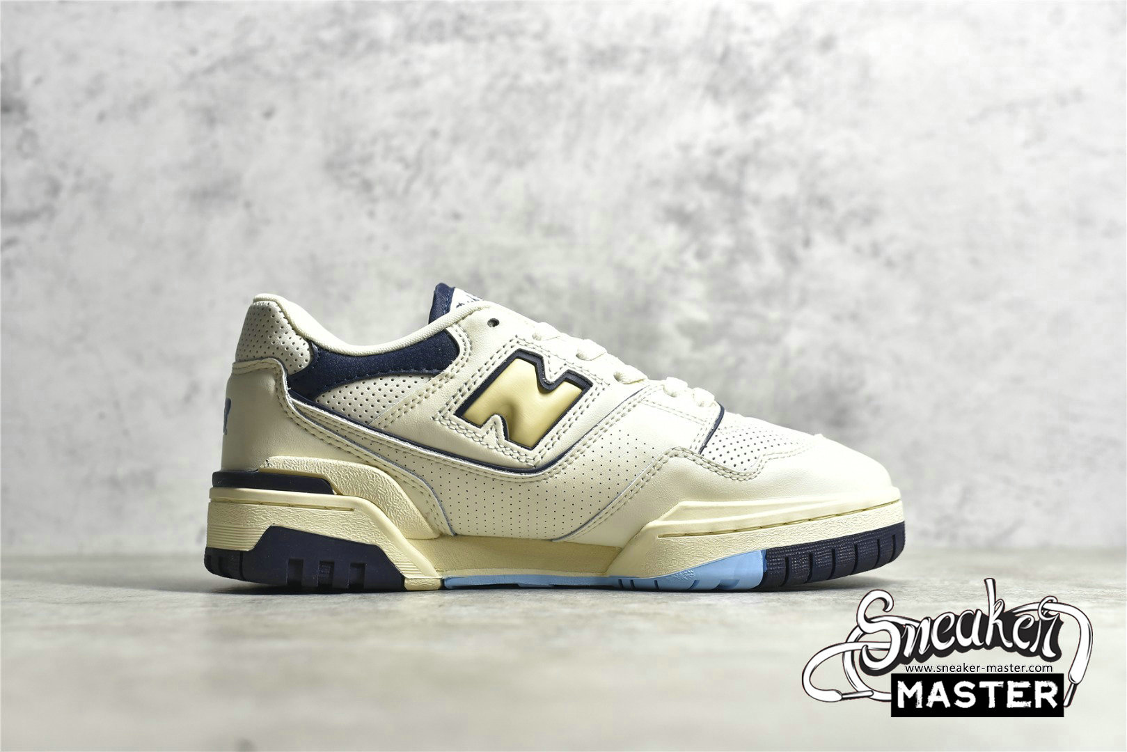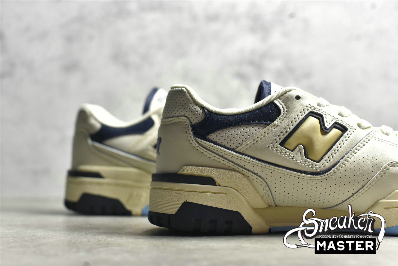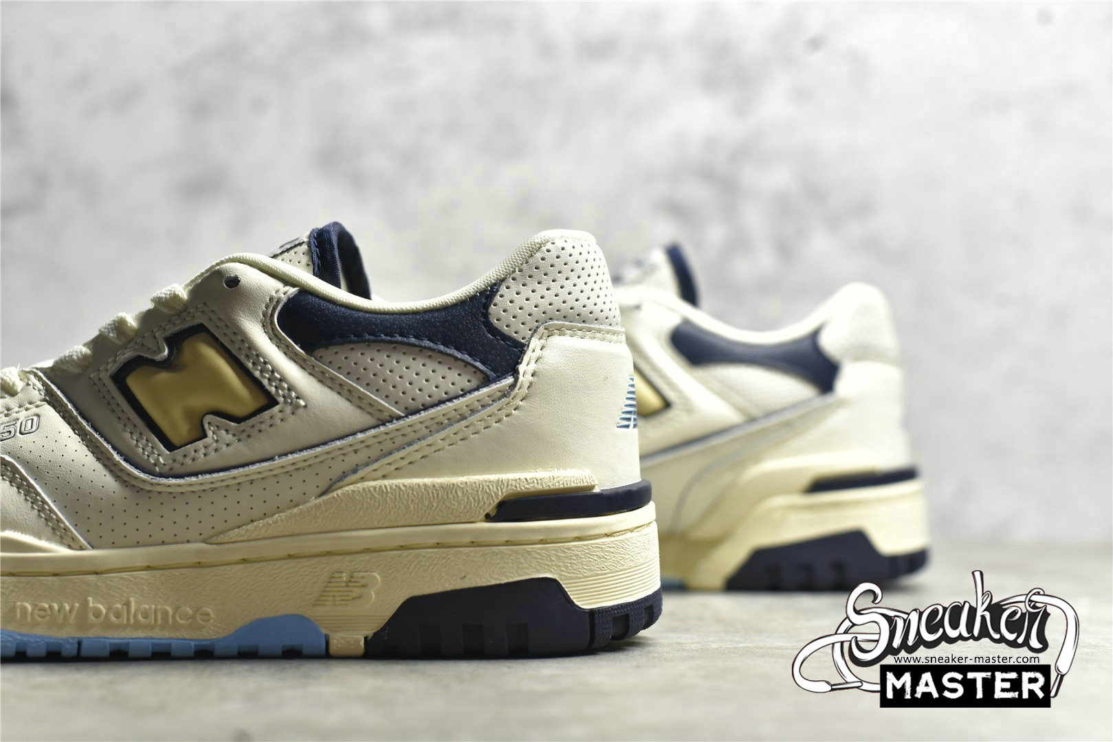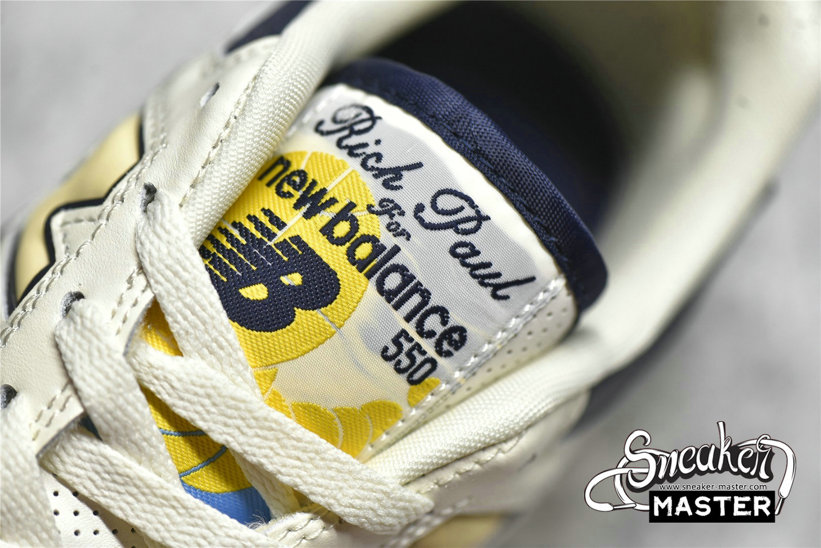 - The Rich Paul x New Balance 550 features an exclusive colorway made for the high-profile sports agent. It features an off-white leather upper with microperforated detailing on the toe box, collar, and midfoot overlay. A cream-colored 'N' logo outlined in navy is on the quarter panel, with woven tongue tag displays of 'Rich Paul for New Balance 550' branding. Mismatched insoles feature Rich Paul's initials on the right shoe and a flying NB logo on the left. It's built on an off-white midsole with a navy and powder blue outsole.