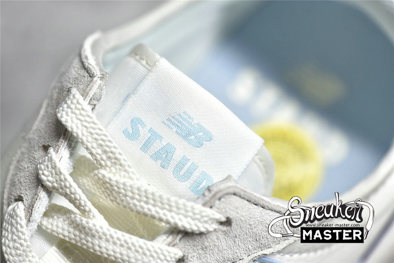 - The STAUD x 327 'Sea Salt Atlantic,' made in collaboration with the Los Angeles fashion brand, dropped as part of a capsule collection in June 2021. The shoe's upper is built with a textile base, overlaid by suede and finished in white and various blue hues. The heel overlay includes co-branding in debossed fashion, while underfoot, a wedge EVA midsole provides cushioning, giving way to a studded gum rubber outsole for traction.