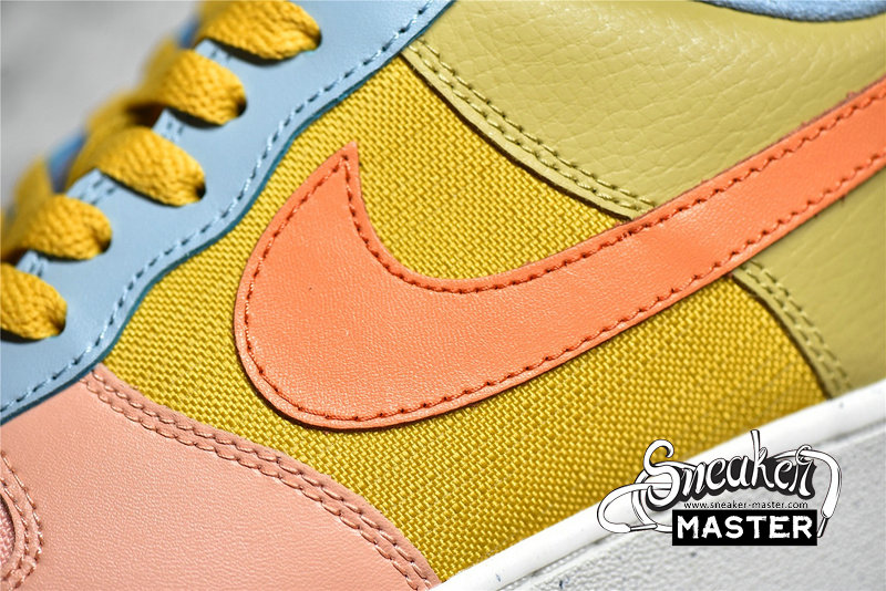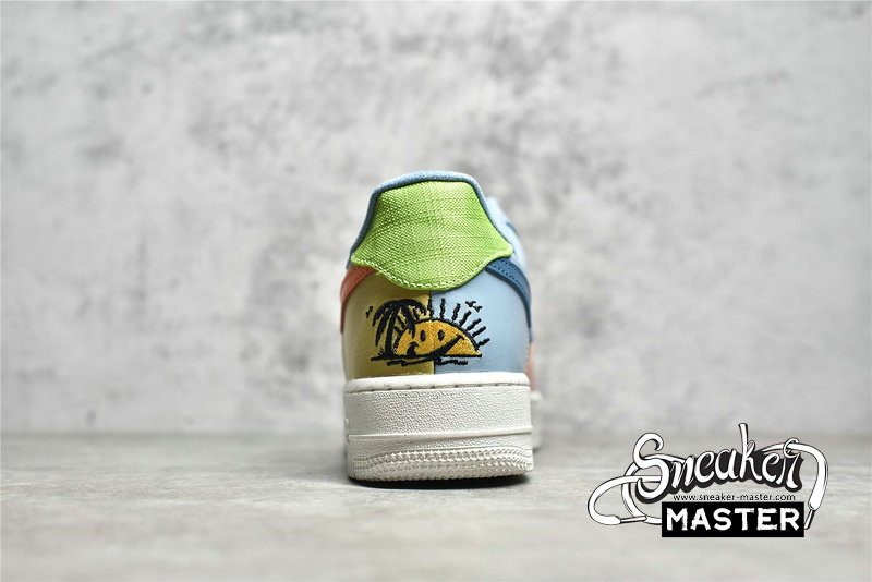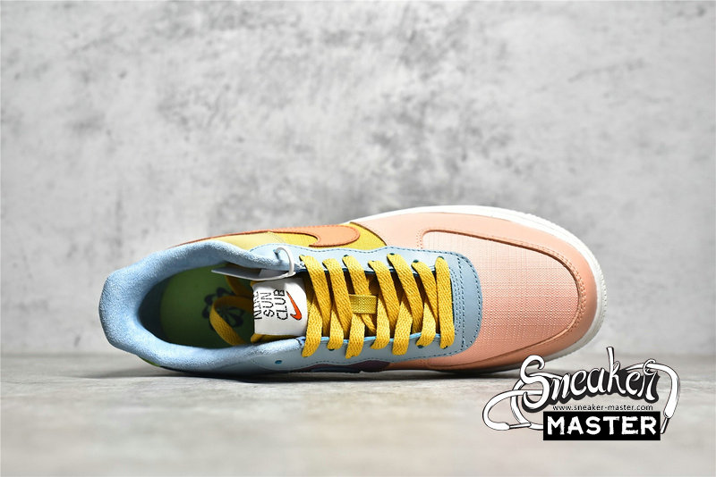 - This offering of the Nike Air Force 1 Low comes in a multicolored color blocking constructed with recycled materials in a mix of canvas, leather, and suede fabrics. Other details includes “Nike Sun Club” tongue branding with a “Have A Nike Day”-style logo on the heels with a vacation graphic on the inner tongues. Volt insoles with the pinwheel logo atop a White Nike Grind rubber outsole completes the design.