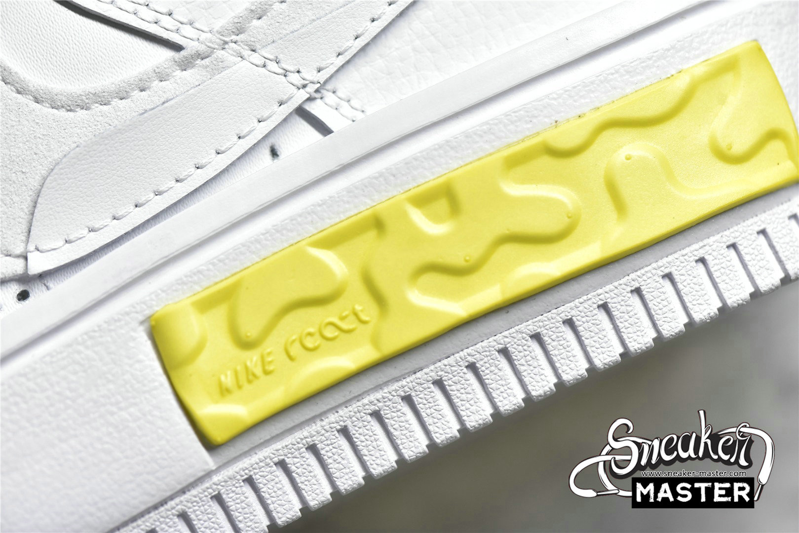 - Inspired by the St. Petersburg rave scene of post-Soviet Russia, the Wmns Air Force 1 Fontanka 'White Opti Yellow' emerges with a unique design. Built with leather, the shoe's upper incorporates an unfinished DIY aesthetic, defined by misaligned stitching, doubled-up eyestays and doubled-up tongues. The Swoosh and heel patch add tonal synthetic suede to the look, while underfoot, a white midsole with a yellow block of React foam in the heel provides cushioning. A concentric rubber outsole offers traction.