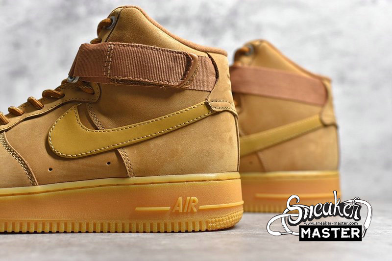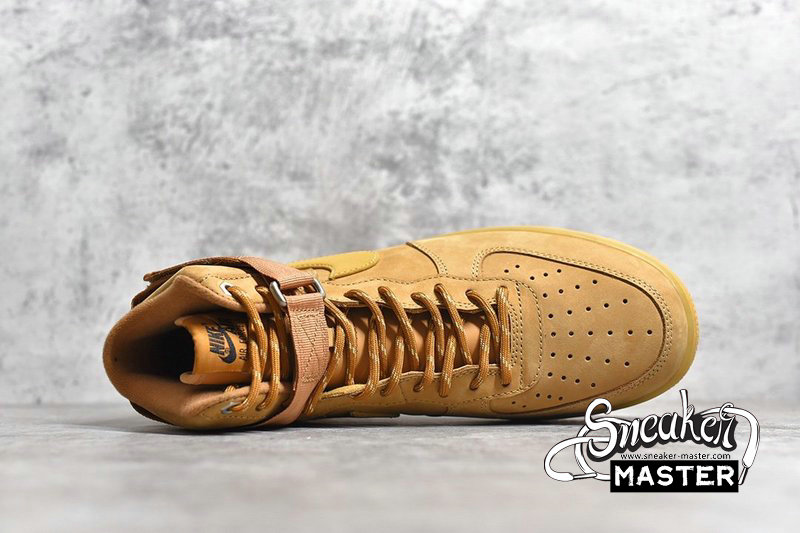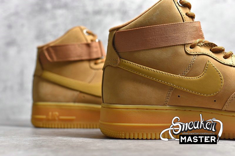 - This offering of the Nike Air Force 1 High features a Wheat nubuck upper, matching tonal branding and metal upper eyelets. Its signature ankle strap, flecked rope laces atop a Gum rubber outsole completes the design.