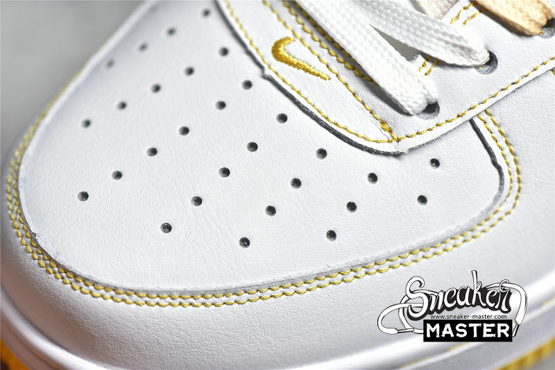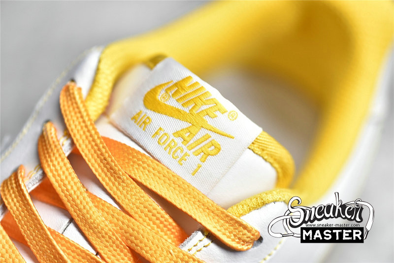 - This Nike Air Force 1 Low features a White leather upper paired with Laser Orange contrasting stitching throughout. Orange continues on the tongue tags, liner, heels, insoles, and rubber outsole atop a clean White midsole.