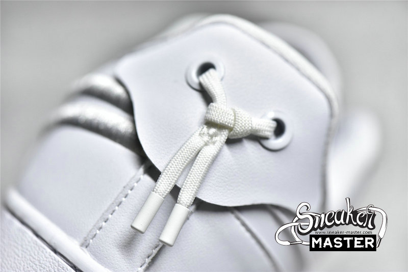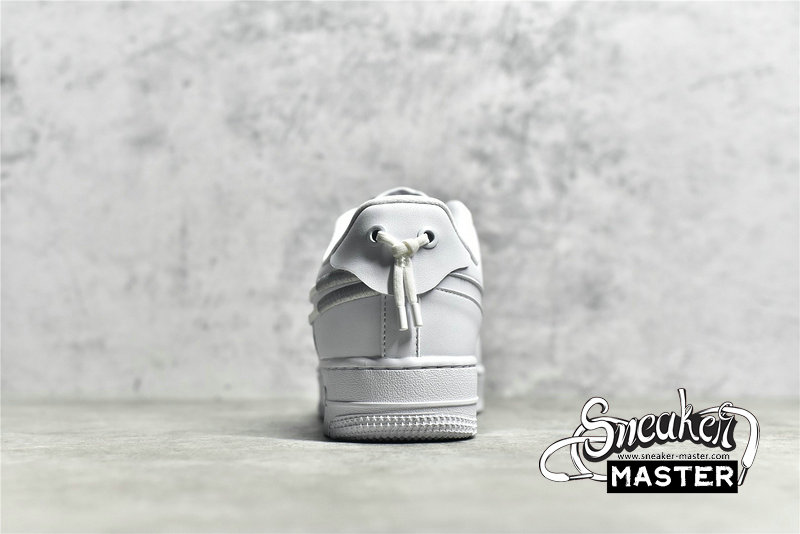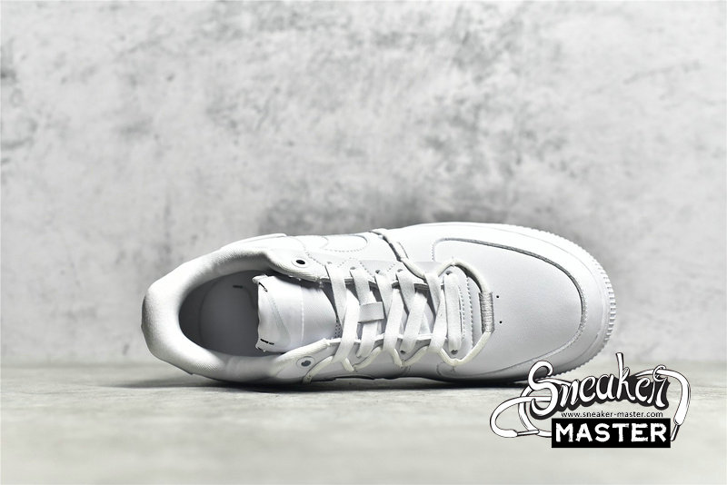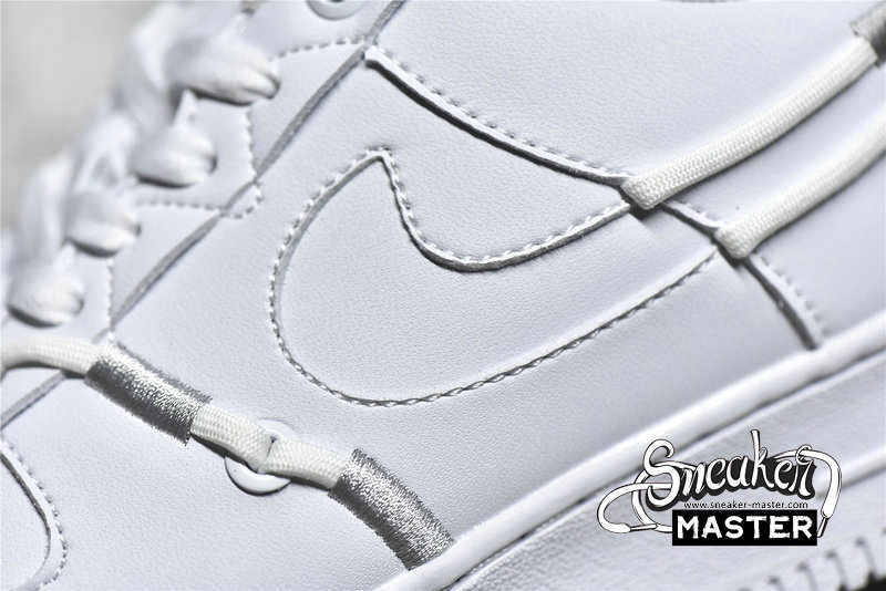 - This offering of the Nike Air Force 1 features an all-White leather base with matching tonal branding throughout. Other details includes cut-out Swooshes with the lacing applied on the lateral, Custom tongue labels with a retro cursive logo on the left and a shoelace itself on the right. Matching insoles atop a solid White AF1 rubber sole completes the design.