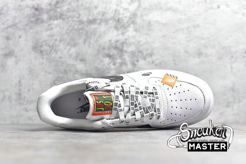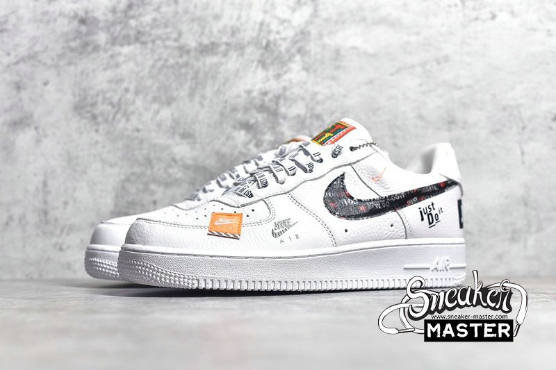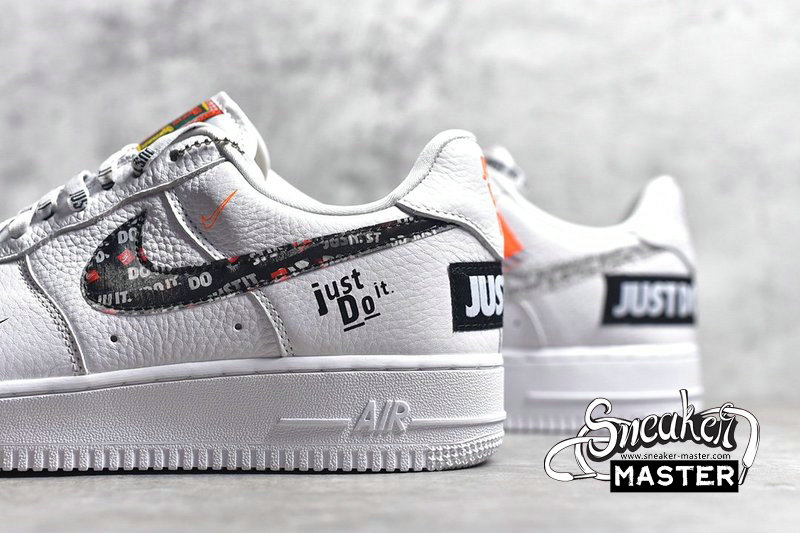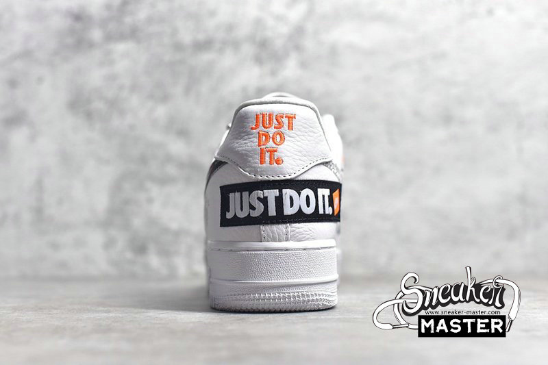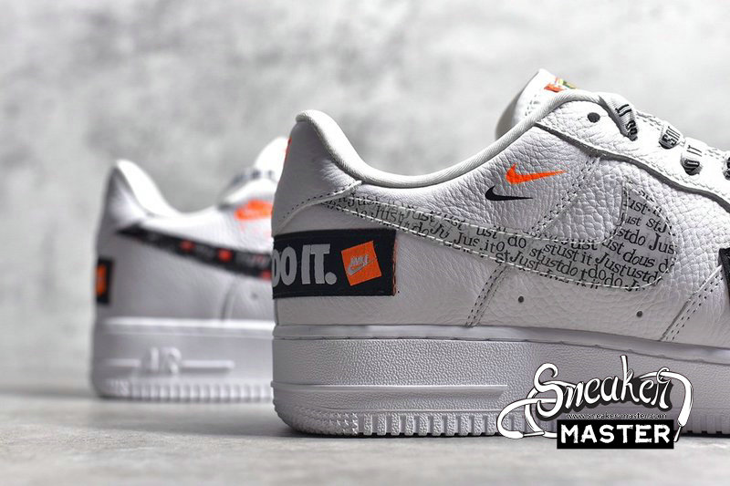 - One of several shoes in Nike's Just Do It collection, the Nike Air Force 1 Low '07 PRM 'Just Do It' celebrates 30 years of Nike’s famous slogan. The shoe's white leather upper features the phrase throughout, modeled after Nike’s original 1988 campaign. The variations include a colorful green and orange ‘Just Do It’ tongue tag, printed Swoosh branding, a bold heel wrap and the wording on the heel patch. A white AF1 sole unit maintains the neutral base of the design.