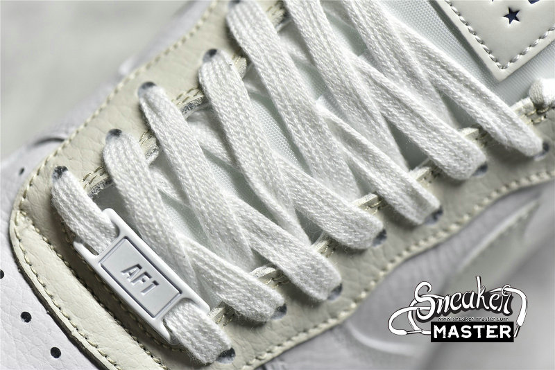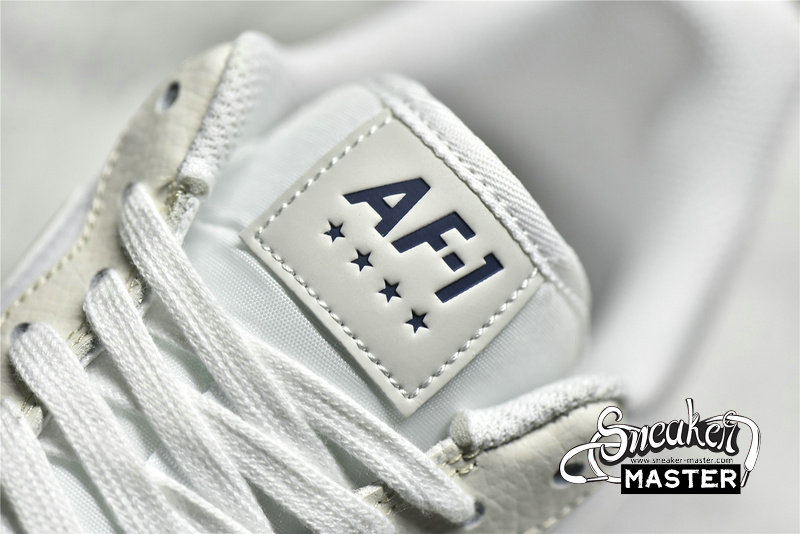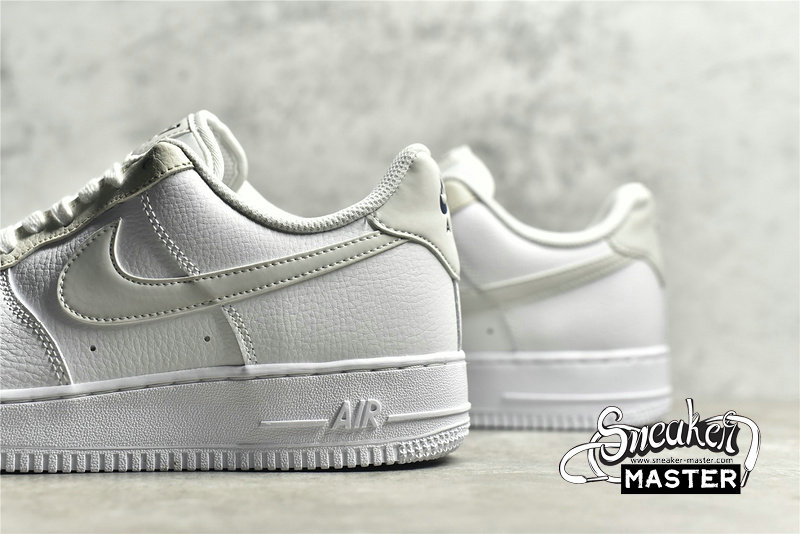 - This Nike Air Force 1 features a White tumbled leather upper paired with Light Bone accents on the eyestay, Swooshes, tongue tags, and heels along with matching laces. Royal Blue is used on the tongue and heel branding while the shoe is completed with a clean White AF1 rubber sole.