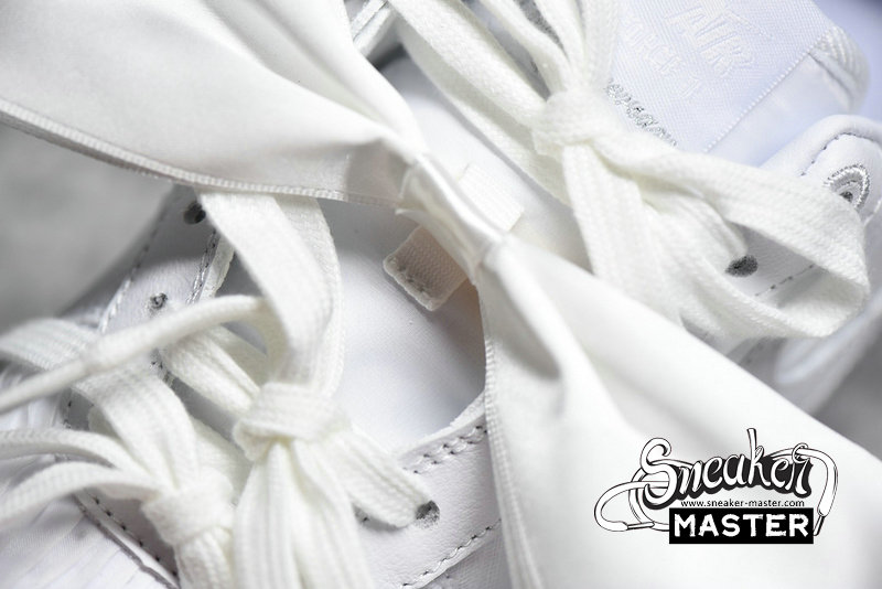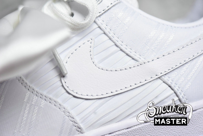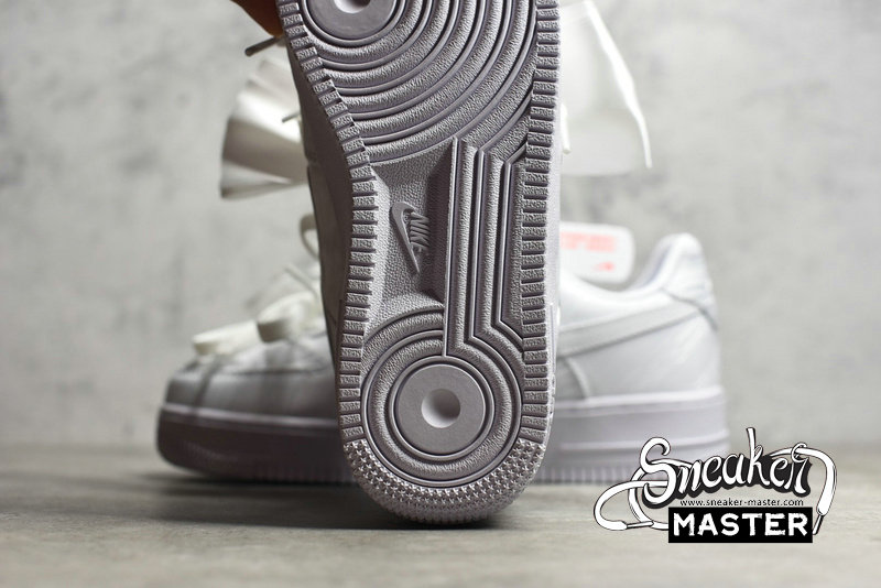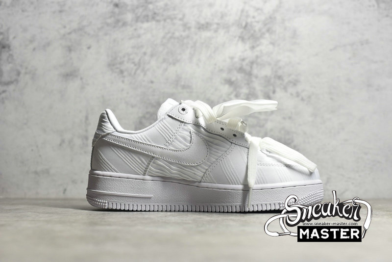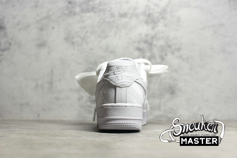 - This offering of the Nike Air Force 1 comes dressed in an all-White color blocking constructed in a mix of materials. It features multiple sets of bow-tied laces highlighted with an oversized removable satin bow across the midfoot. A solid White AF1 rubber sole completes the design.