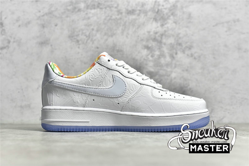- This offering of the Nike Air Force 1 Low features a clean White upper embossed with Chinese patterns and designs paired with smooth leather Swoosh logos on the sides. A similar design in vibrant watercolors covers the liner and insoles completed with an icy translucent outsole housed in special-edition packaging.
