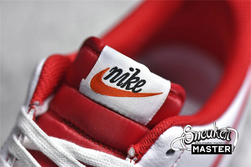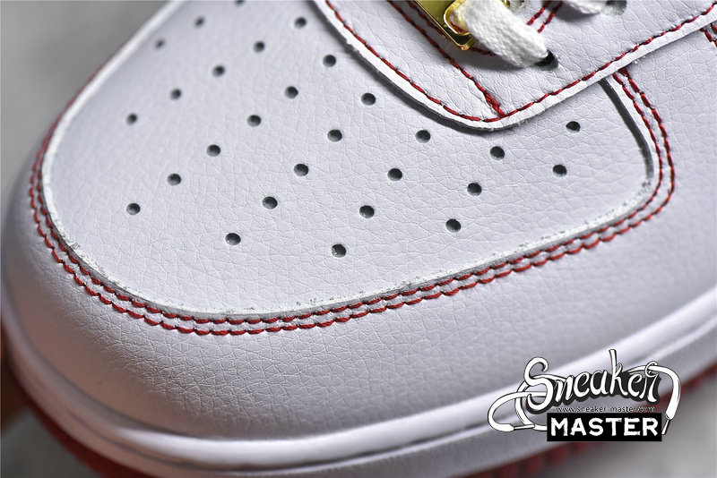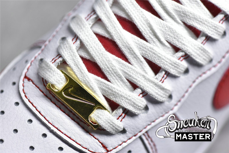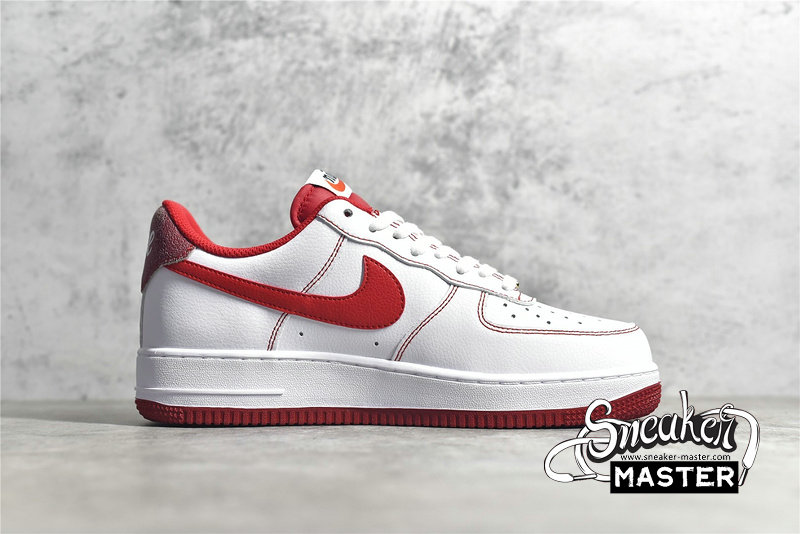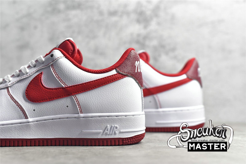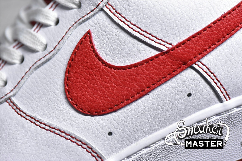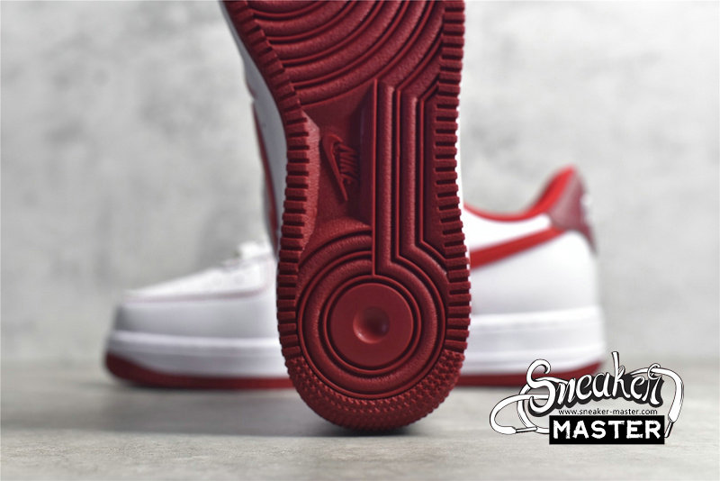 - This Nike Air Force 1 Low feature White leather on the base while bright Red lands on the Swoosh logos and exposed stitching. Next, we have a darker shade of Red on the nylon tongue, liner, and rubber outsole while the heel overlay features a cracked finish. We then have White branding on the insoles which shows the year the Swoosh was created, laces, and the midsole to finish the look.