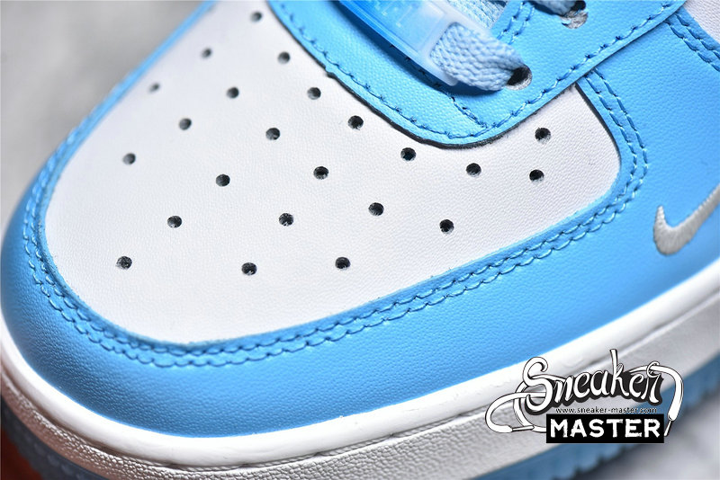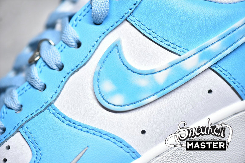 - This offering of the Nike Air Force 1 Low features a White leather base with University Blue overlays, mini Chrome Swoosh hangtag atop a White midsole and Blue translucent outsole. A nod to the nail art theme is found on the cloudy TPU Swooshes and dubraes completed with graphic insoles.