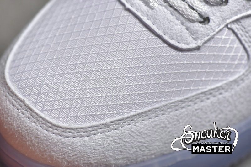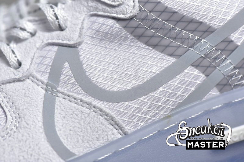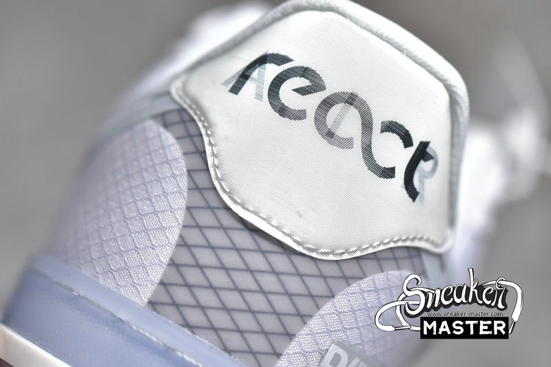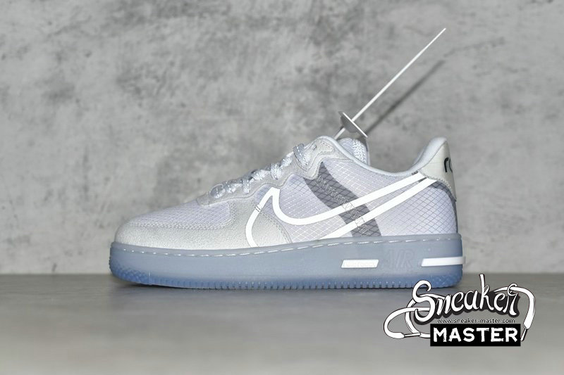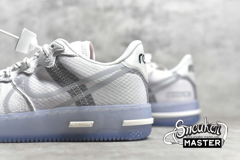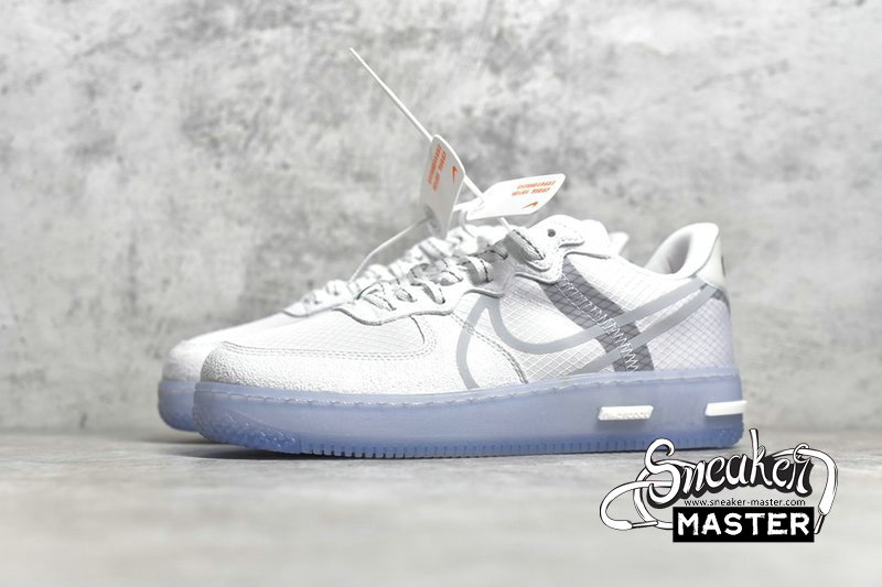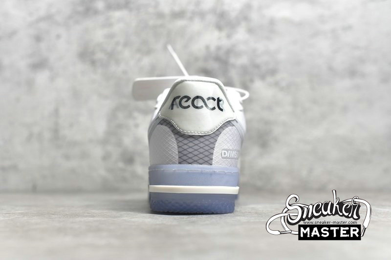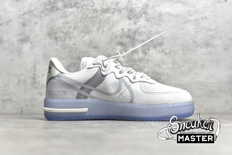 - The Air Force 1 React QS 'White Ice' brings a neutral look to its hybrid construction. Built with textile, the upper is highlighted by reflective detailing throughout, while an exaggerated eyestay adds to the aesthetic. Underfoot, a drop-in React footbed works with Air in the midsole to provide cushioning, giving way to a Rush Coral outsole for traction.