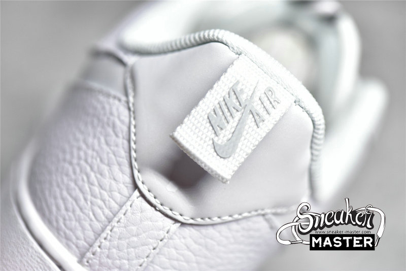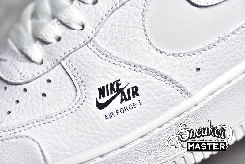 - This offering of the Nike Air Force 1 Low features a White tumbled leather upper with a Black Nike Air motif on the forefoot. Some of the major tweaks includes higher-cut tongues, vertical tongue tags, added heel pull tabs, and brandless heels. Highlighting the shoe are 3M reflective Swooshes and heels.