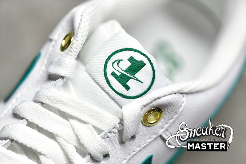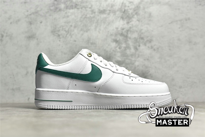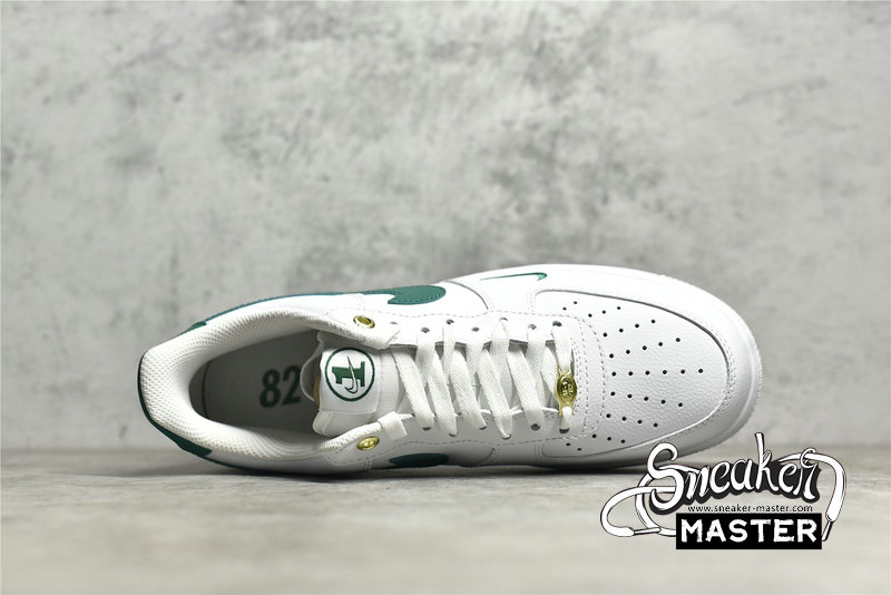 - This offering of the Nike Air Force 1 Low features a Sail leather base with mesh lining and tongues detailed with Green accents throughout. Special “1” branded tongue tags, “82-22” insole motifs with Metallic Gold dubraes and upper eyelets atop a White AF1 rubber sole completes the design.