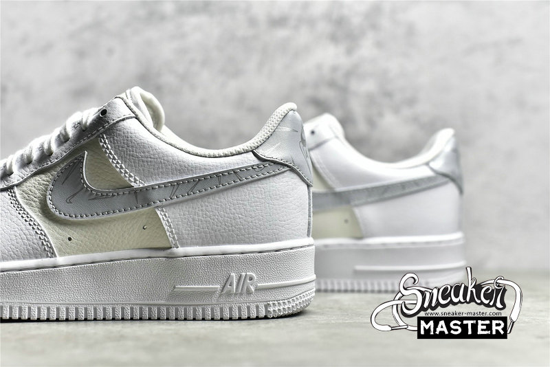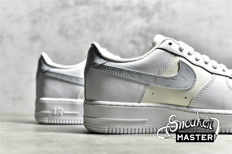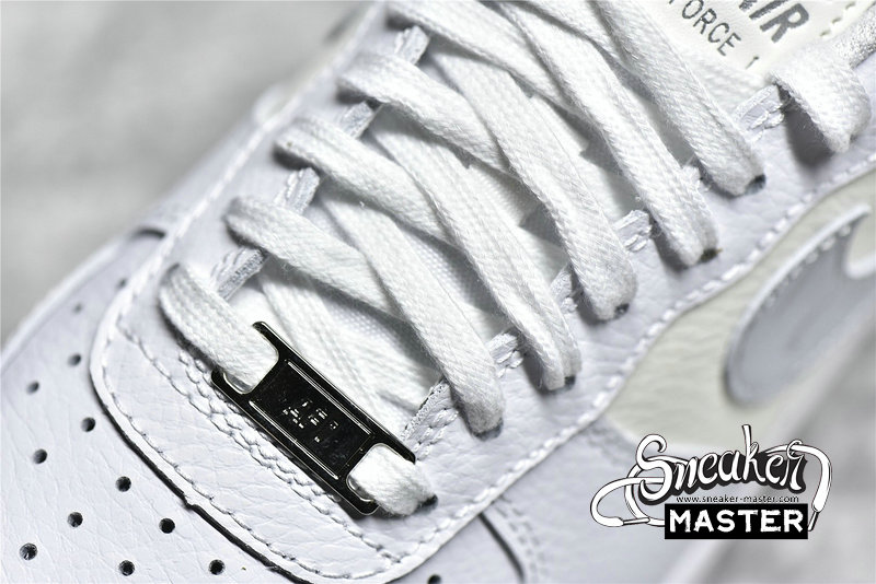 - This Nike Air Force 1 Low gets covered in a white pebbled leather construction throughout the majority of the upper with cream detailing hitting the side panels. The standout detail on this Uptown comes on the side panel Swooshes and the heel tabs which have been filled in with mini Swooshes. Cream and grey detailing on the tongue tags and insoles along with a white rubber sole unit down below finish things off on this Nike Air Force 1 Low.