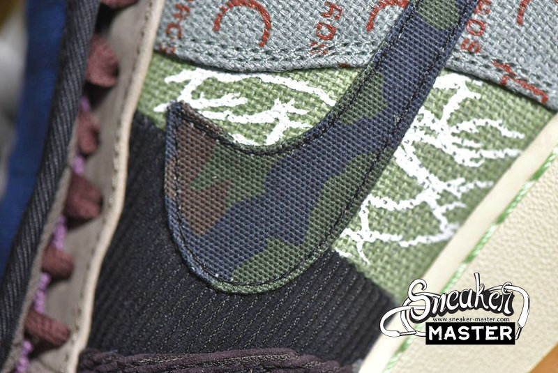 - The Nike Air Force 1 Low Travis Scott Cactus Jack (PS) offers a collage of tough materials — wool, flannel, leather, corduroy, and duck canvas. While this shoe calls back to Travis Scott's roots, it also celebrates his career with Cactus Jack logos printed across the upper. Each side features a different color scheme, with orange and purple on the left and neutral shades on the right.