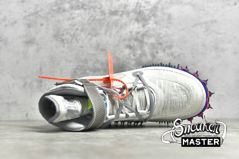 - This offering of the Off-White x Nike Air Force 1 Mid features a White knitted construction on the majority of the upper which is then joined by an exposed lacing system that overlays the original laces, clear Swooshes on the side panels, warped wavy midsoles, and grey rubber outsoles with green and pink spike detailing. Check out the latest images and look for this Off-White x Nike Air Force 1 Mid to release some time in May 2022 for $185. Keep it locked to Kicks On Fire for updates.