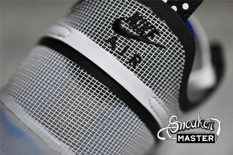 - This offering of the Nike Air Force 1 React arrives in a White, Light Photo Blue, and Deep Royal Blue color blocking. It comes constructed in a mix of leather and mesh with transparent TPU overlays in the rear along with embroidery branding on the heels. A React foam plate is embedded into the two-tone rubber and translucent sole.