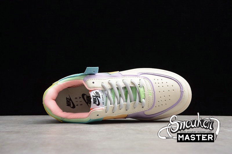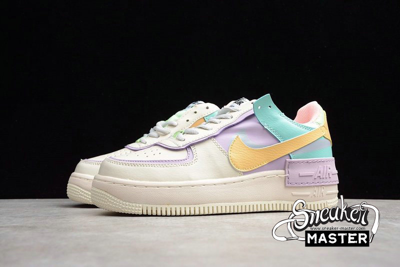 - The women’s Air Force 1 Shadow 'Pale Ivory' gives the classic Nike silhouette a reconstructed makeover, complemented with pastel accents and layered detailing. The latter is achieved by doubling up on a number of the sneaker’s key components, including the eyestay, mudguard, heel tab and Swoosh. Lightweight cushioning comes courtesy of a slightly raised foam midsole, reinforced by a cored out rubber outsole.