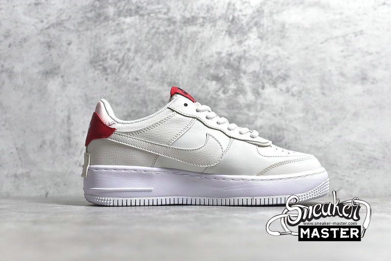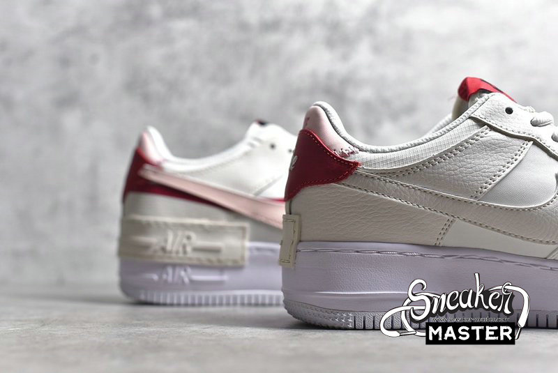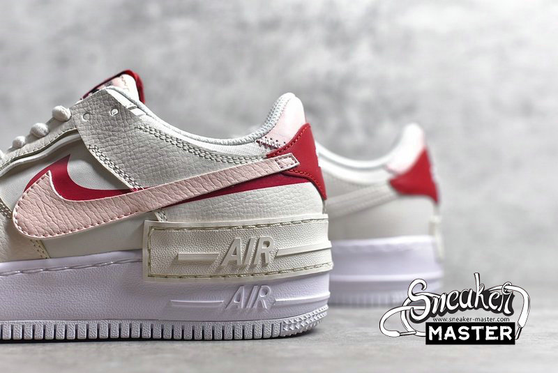 - The Air Force 1 Shadow 'Phantom' applies pastel hues on a uniquely layered build. The sneaker’s tumbled leather upper features doubled-up construction on the eyestay, mudguard, heel tab and Swoosh, the latter two components rendered in complementary red and pink hues. The kicks are finished with a slightly exaggerated white foam midsole, adding to the sneaker’s unexpectedly bold look.