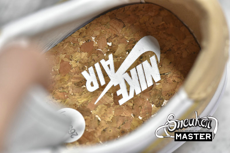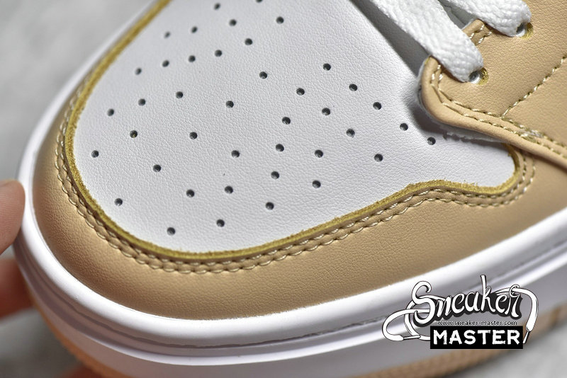 - This rendition of the Air Jordan 1 features a White leather base with Beige-like Onyx overlays and Swooshes. A modified chunky platform sole in White atop a Onyx rubber outsole with the outline of the “Wings” logo in the rear and cork insoles completes the design.