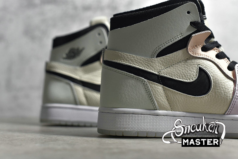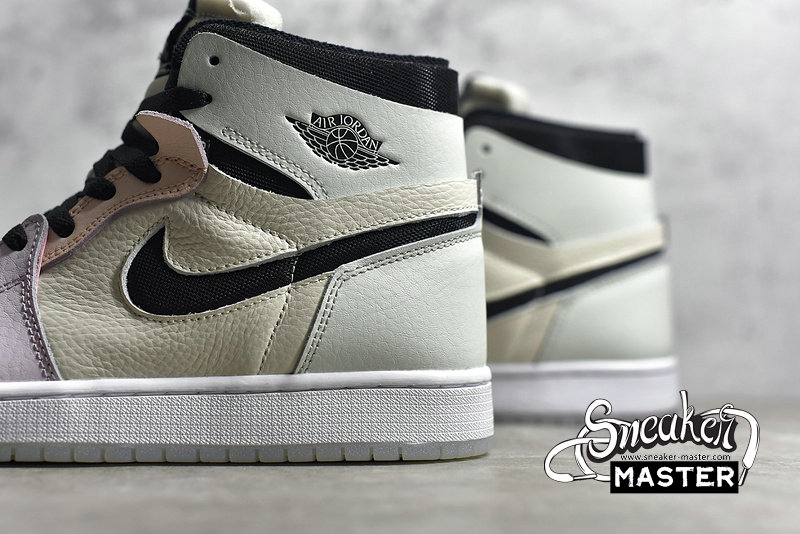 - Dressed in a White, Grey Heather, Olive Aura, and Khaki color scheme. This Air Jordan 1 features a leather upper covered in pastel hues with Black cut-out mesh Swooshes, Zoom Air leather tongue tags, laces, Wings logo, and insoles. A White and semi-translucent full-length Zoom Air cushioning completes the design.