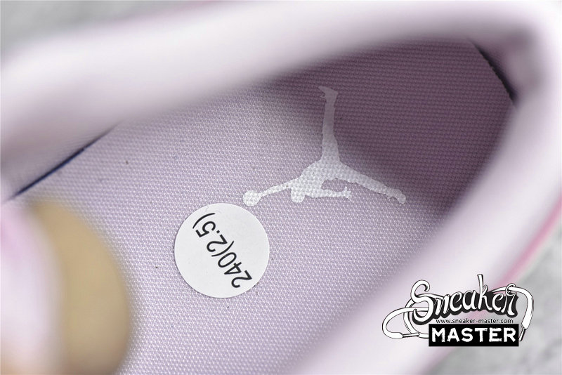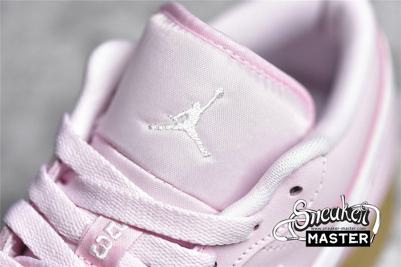 - This offering of the low-top Air Jordan 1 features an Arctic Pink leather upper with mesh tongues matching laces and perforated toe box. White covers the leather Swooshes, embroidered tongue and heel branding as well as the insoles. Finishing off the design is a Gum rubber outsole.