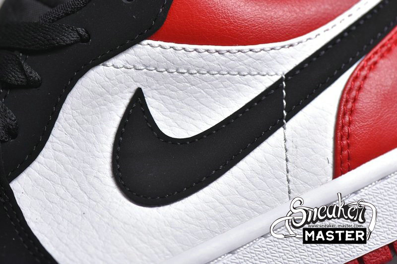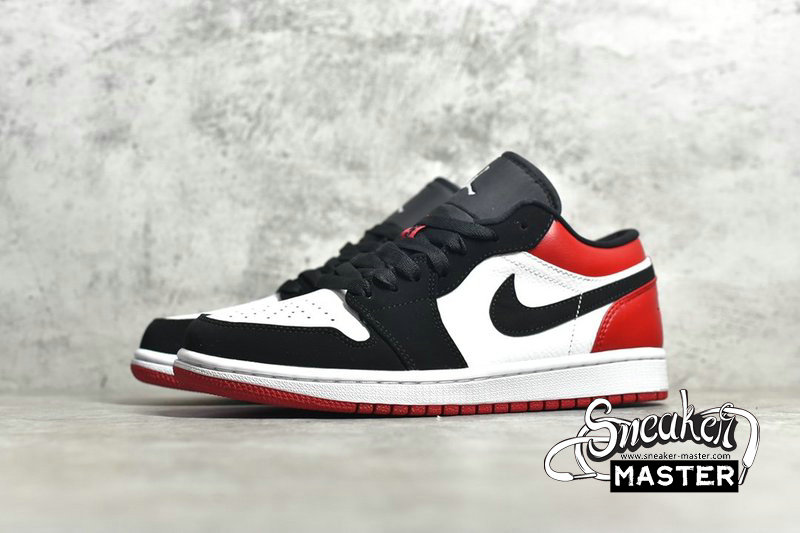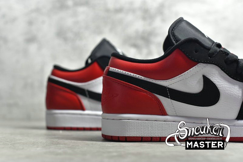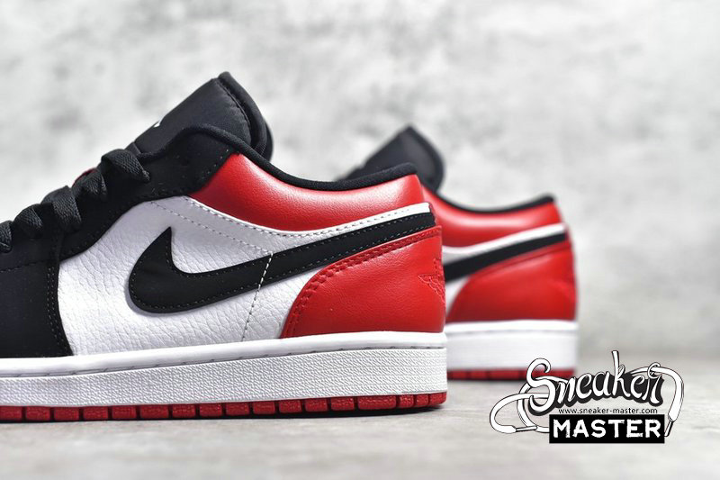 - The Air Jordan 1 Low 'Black Toe' brings an OG Air Jordan 1 colorway to a low-cut iteration. The shoe's upper is built with Gym Red leather on the heel and collar and white leather on quarter panel and perforated toe box. The Swoosh, eyestay and toe box are finished in black nubuck, while the 'Wings' logo has been debossed tonally on the collar. Underfoot, the white midsole houses Air for cushioning.